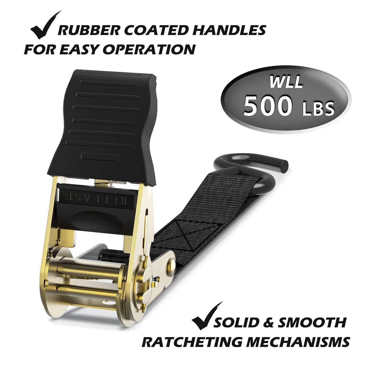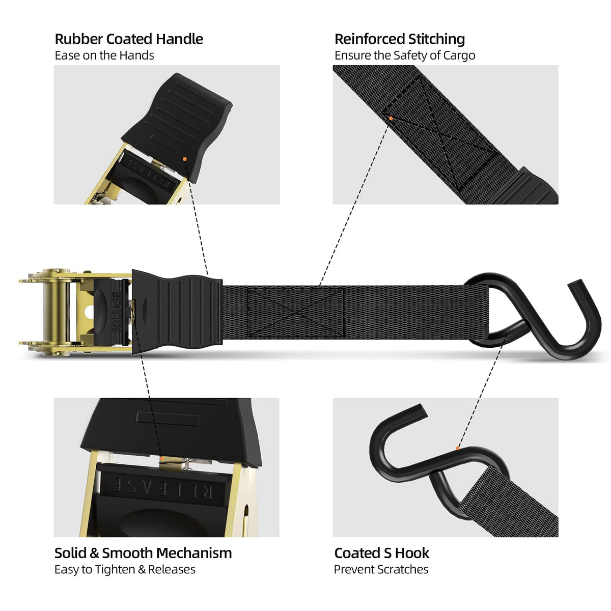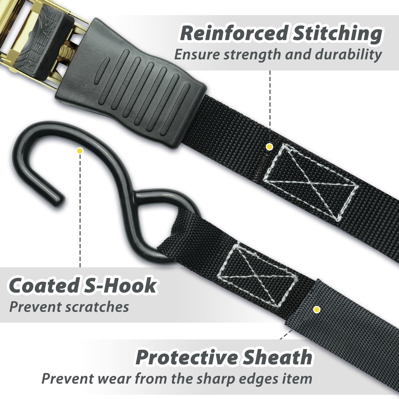 Q: Are the hooks on these straps safe for my cargo?A: Yes, the rubber-coated 'S' hooks are designed to prevent damage to your cargo and equipment, ensuring optimal performance while securing your load.
