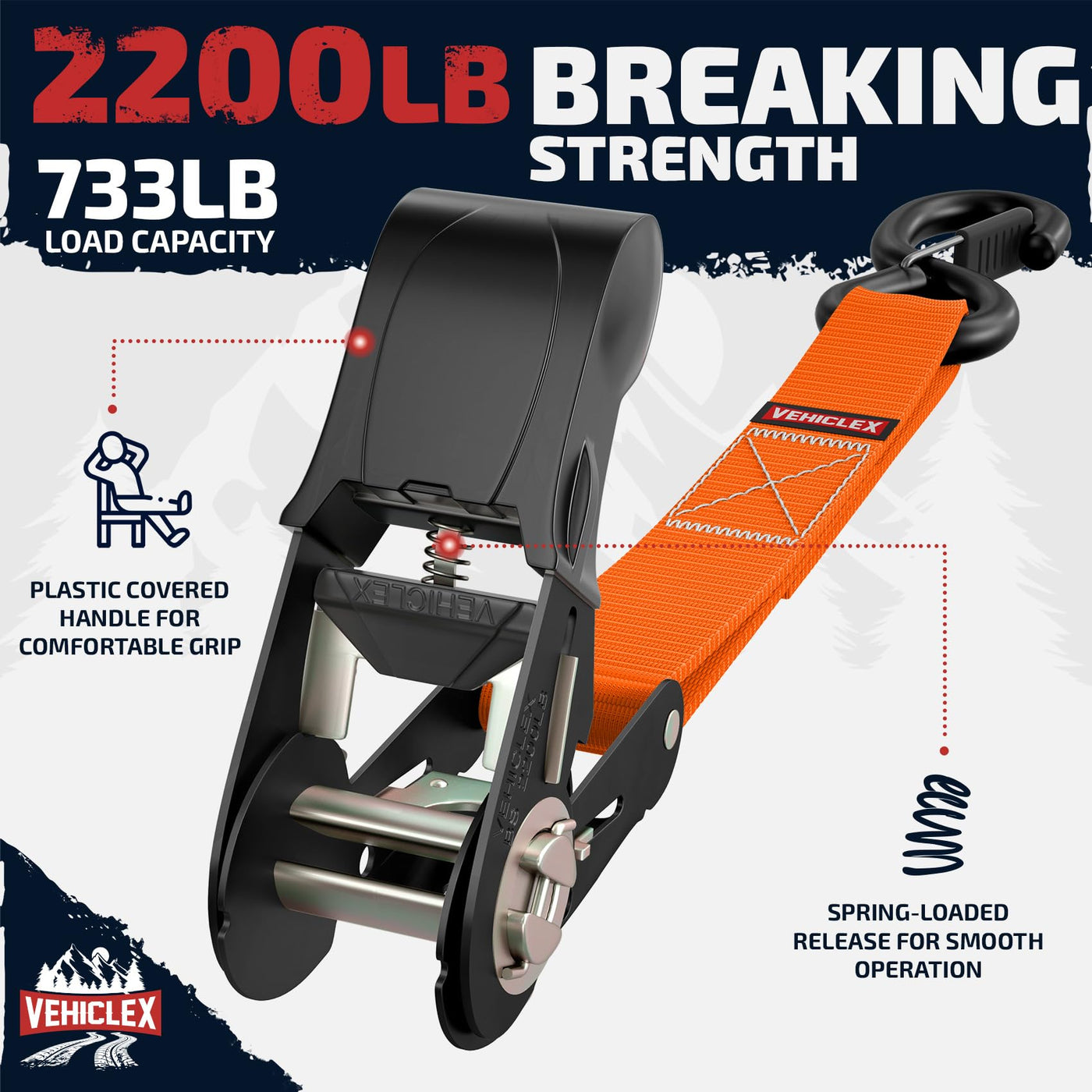 Safety And Convenience: A Vehiclex Promise Vehiclex Proudly Presents The Ultimate Solution For Secure Cargo Transport. Our 1-Inch Tie-Down Straps Come Up To A Wide Range Of Users, From Experts To Novices. Let'S Explore How Vehiclex'S Heavy-Duty Ratchet Straps Bring Safety And Convenience To Your Cargo Securing Needs. Enhanced Handling For Secure Cargo Vehiclex Ensures That Your Cargo Securing Experience Is Comfortable And Effective With Our Ergonomically Engineered Handle. Whether You'Re A Seasoned User Or A Beginner, This User-Friendly Handle Allows For Effortless Tension Adjustment. Durability And Reliability Built To Last The Strength Of Vehiclex'S Motorcycle Tie-Down Straps Lies In The Robust Webbing And The Reinforced Stitching. The 1-Inch Wide, 15 Feet Long Webbing Is Designed To Endure Heavy Loads, Ensuring Enduring Reliability For All Your Cargo Securing Needs. Secure And Reliable Attachment At Vehiclex, We'Ve Incorporated Rubber-Coated Full Bend S-Hooks, Providing A Solid And Reliable Attachment. These S-Hooks With Spring Loaded Clips Prioritize Security, Preventing Accidental Releases During Transit And Offering Unwavering Cargo Protection. Effortless Organization Complementing The Set Is A High-Quality Storage Bag From Vehiclex, Valued At $10. This Thoughtfully Designed Bag Is More Than An Accessory – It'S Your Key To Maintaining Organized And Tangle-Free Straps. Keeping Your Straps Ready For Use Has Never Been This Easy.
