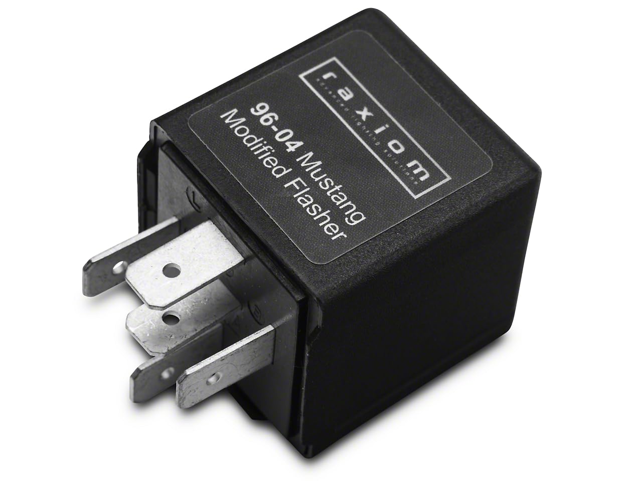 CLASSIC SLOW SEQUENTIAL FLASH RATE: Upgrade your 1996-2004 Mustang's sequential tail light aesthetics with Raxiom Modified Turn Signal Flasher -V1, designed to slow down the flash rate of your Mustang's rear taillights for a true classic muscle car styling. The slow sequential pattern provides a more dramatic, pronounced appearance to your turn signals, brake lights, and hazards adding a touch of sophistication to your Mustang's lighting system. | COMPATIBLE FOR: This plug and play tail light flasher kit are meticulously crafted to fit seamlessly and are compatible to fit he 1996, 1997, 1998, 1999, 2000, 2001, 2002, 2003 and 2004 Mustangs (Excluding 99-01 Cobra) with a Sequential Taillight Kit installed. NOTE: This replacement turn signal flasher v1 is intended to use for taillights using incandescent bulbs only, It will not function properly on newer Mustangs with LED lights. NOT compatible with 99-2001 Cobra models. | UPGRADED MODERN ELECTRONICS: Raxiom rear taillights flasher relay module are assembled from state-of-the-art electronic components and is designed to be a direct replacement for your stock Electronic Turn/Hazard Flasher Relay. This module works with all brands of sequential tail light kits. | PLUG AND PLAY INSTALLATION: Installation of this Mustang tail light sequential turn signal relay is a breeze and can be done in few steps. Simply replace your stock Electronic Turn/Hazard Flasher Relay with this innovative plug-and-play module flasher. Say goodbye to complex installation processes and enjoy the slow turn signal flashing rate features of your Pony with Raxiom Modified Turn Signal Flasher V1. | RAXIOM QUALITY At Raxiom we create the highest-quality performance and off-road lighting products on the market. By developing groundbreaking technologies for a wide variety of vehicles, we have created a balance in design where form meets function, creating a product line that is truly unique to help your vehicle stand out. With award-winning lighting and technology solutions Raxiom has earned a reputation as the go-to lighting brand for all your automotive needs.