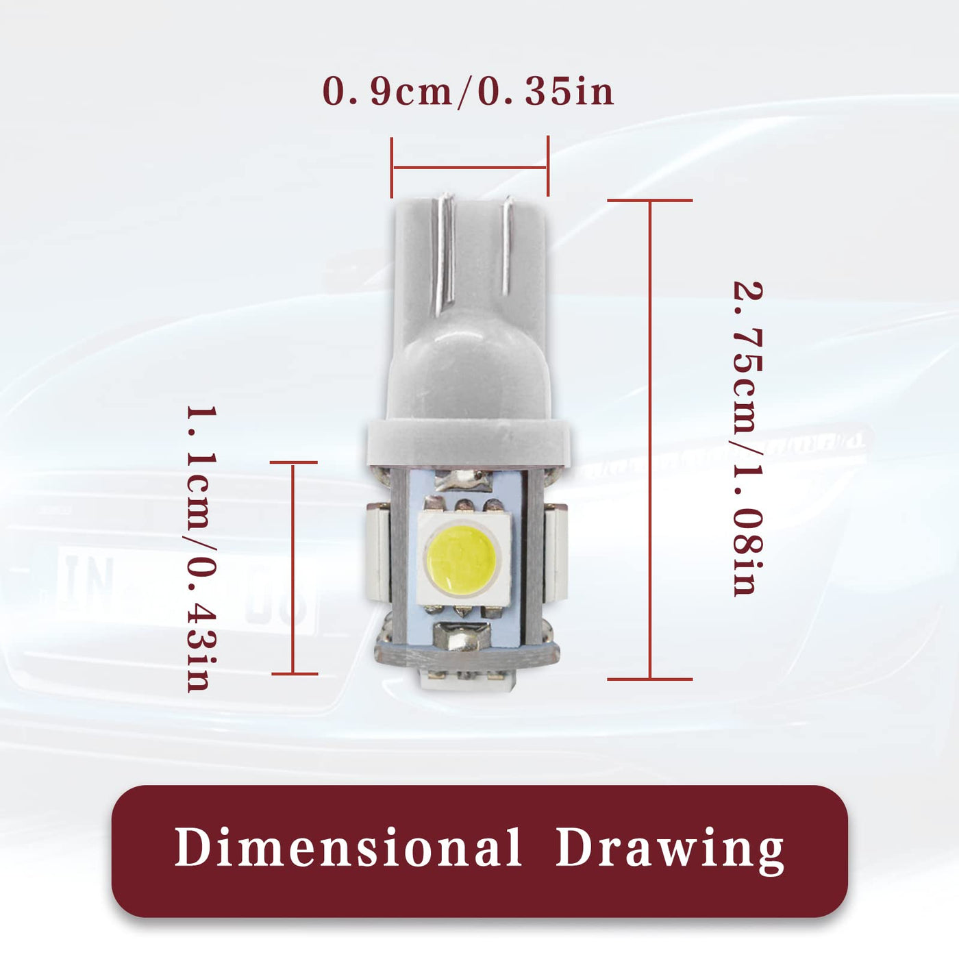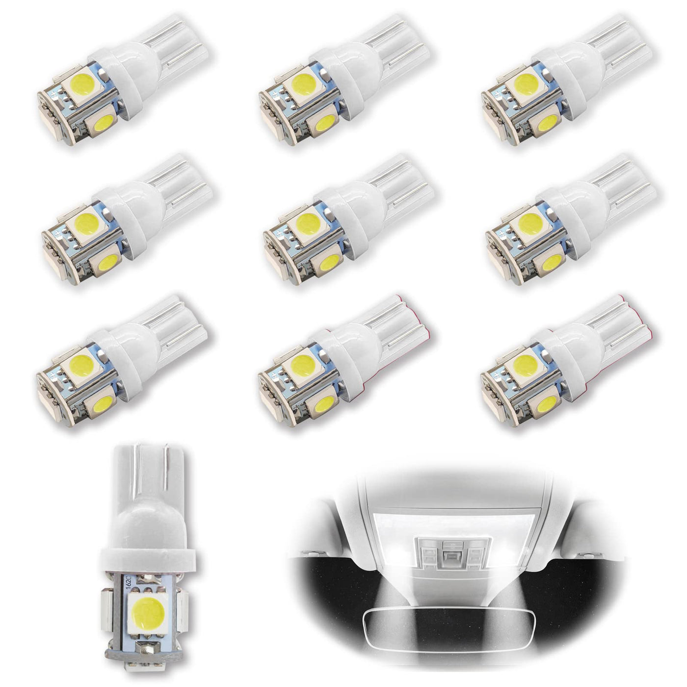 Rboko 10Pcs 194 Led Light Bulb 6000K Wedge T10 Led Bulb 5Smd 5050 Chips, 168 T10 2825 5Smd Dc 12V Replacement Bulbs For Car Dome