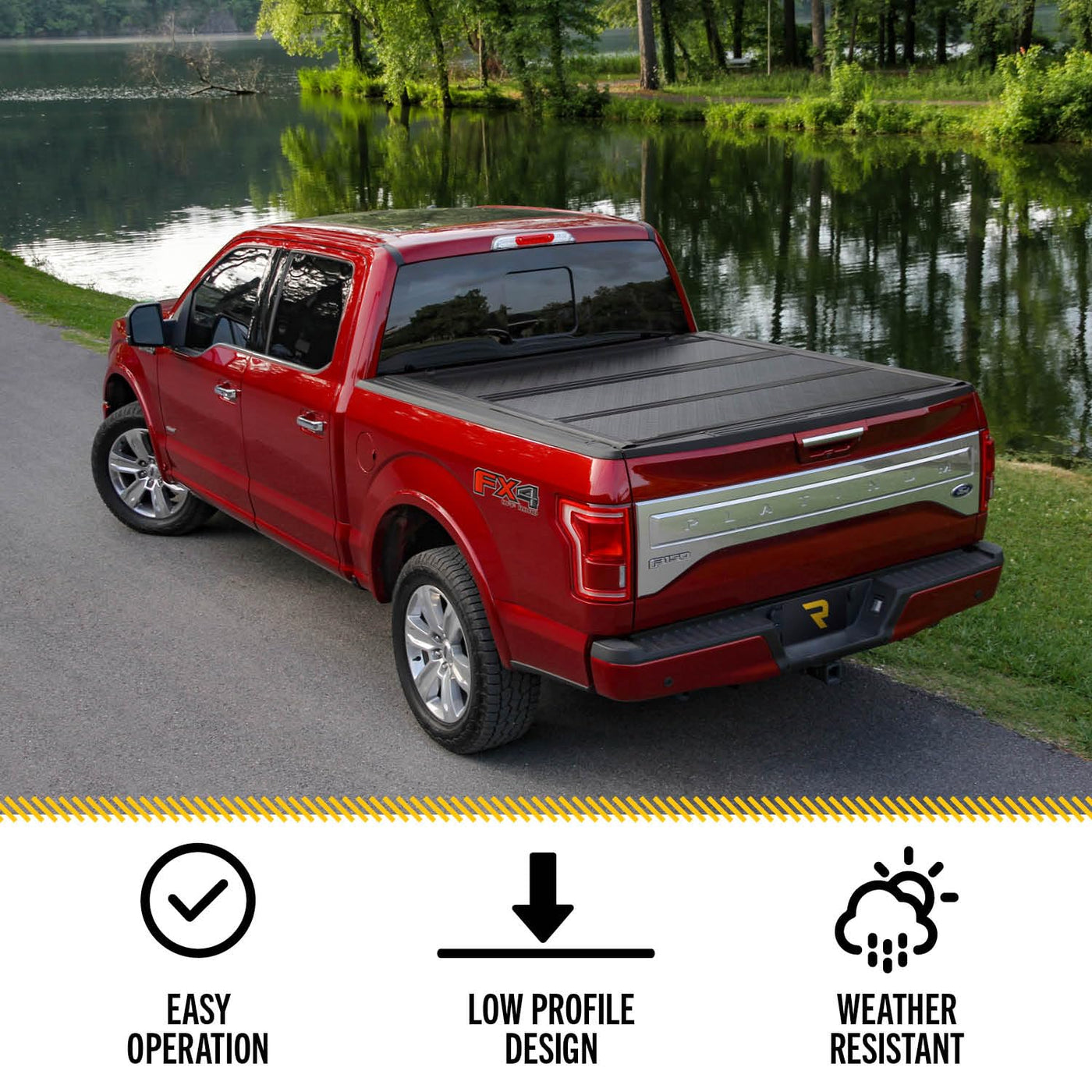 The UnderCover Flex hard folding truck bed cover comes in a gloss black finish and lies flush with the truck bed. The Flex hard folding cover allows you to drive with the cover partially or fully open, providing 100% bed access when you need to transport large items that stick out of the bed. When fully open, the Flex is secured in an upright position with dual prop rods that lock into place and stow away easily when not in use. The Flex provides the ultimate security, with durable aluminum panels and an automatic latching system that locks the cover into the bed’s side rails. The latches are easily released with multiple pull handles underneath the cover, on either side of the bed, so you can effortlessly open the cover from either side of the truck. The Flex is also extremely functional, with a dual-action tailgate seal that enables you to close the tailgate without having to lift the cover first. The Flex is proudly made in the USA with a US-based customer support team and it comes backed by a 3-year, hassle-free guarantee. The Flex provides the ultimate security, with durable aluminum panels and an automatic latching system that locks the cover into the bed’s side rails. The latches are easily released with multiple pull handles underneath the cover, on either side of the bed, so you can effortless open the cover no matter what side of the truck you happen to be on. The Flex is also extremely functional, with a dual-action tailgate seal that enables you to close the tailgate without having to lift the cover first. The Flex is proudly made in the USA with a US-based customer support team and it comes backed by a 3-year, hassle-free warranty.