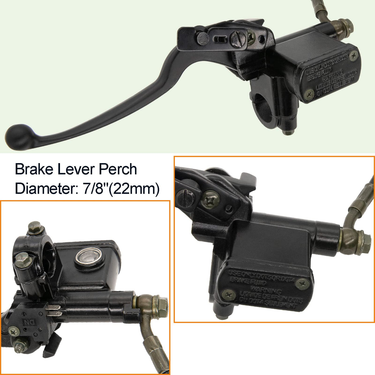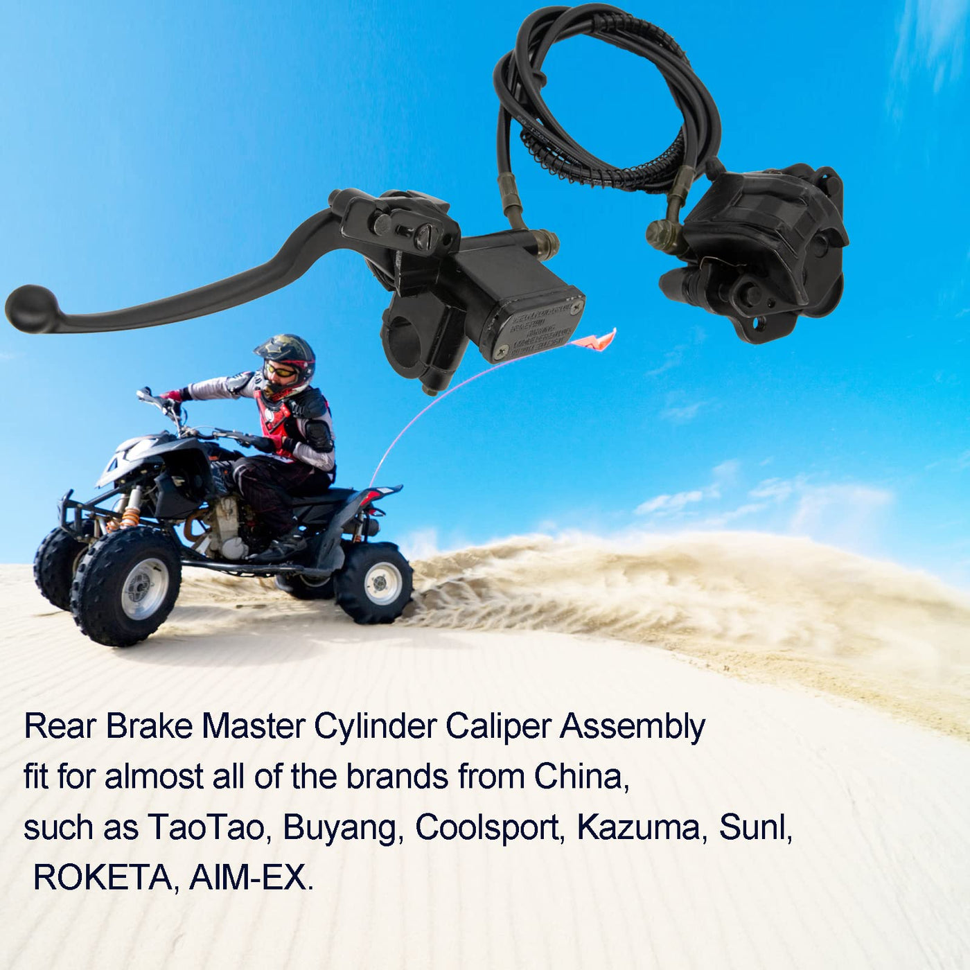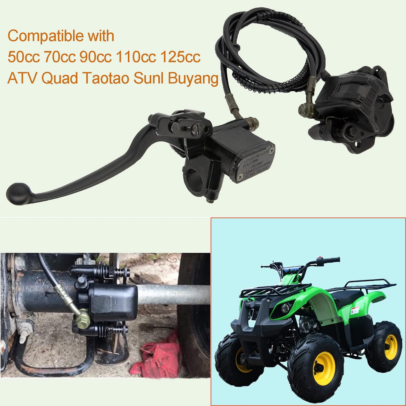 The Rear Hydraulic Disc Brake System Caliper Assembly Made Of High Quality Material, Precision Castings, Solidly And Durably, Good Working Performance. Brake Hose Is 54',Caliper Mounting Hole Spacing: 2 1/2'; Brake Lever Perch Diameter: 7/8'. This Rear Hand Hydraulic Disc Brake Master Cylinder Caliper Assembly With Brake Pads Fit For 50Cc 70Cc 90Cc 110Cc 125Cc Chinese Atv Quad. This Rear Brake Master Cylinder Caliper Assembly&Nbsp; Fit Almost All Of The Brands From China,&Nbsp; Such As Taotao, Buyang, Coolsport, Kazuma, Sunl, Roketa, Aim-Ex. Package Includes 1*Rear Hand Hydraulic Disc Brake Caliper System With Pads