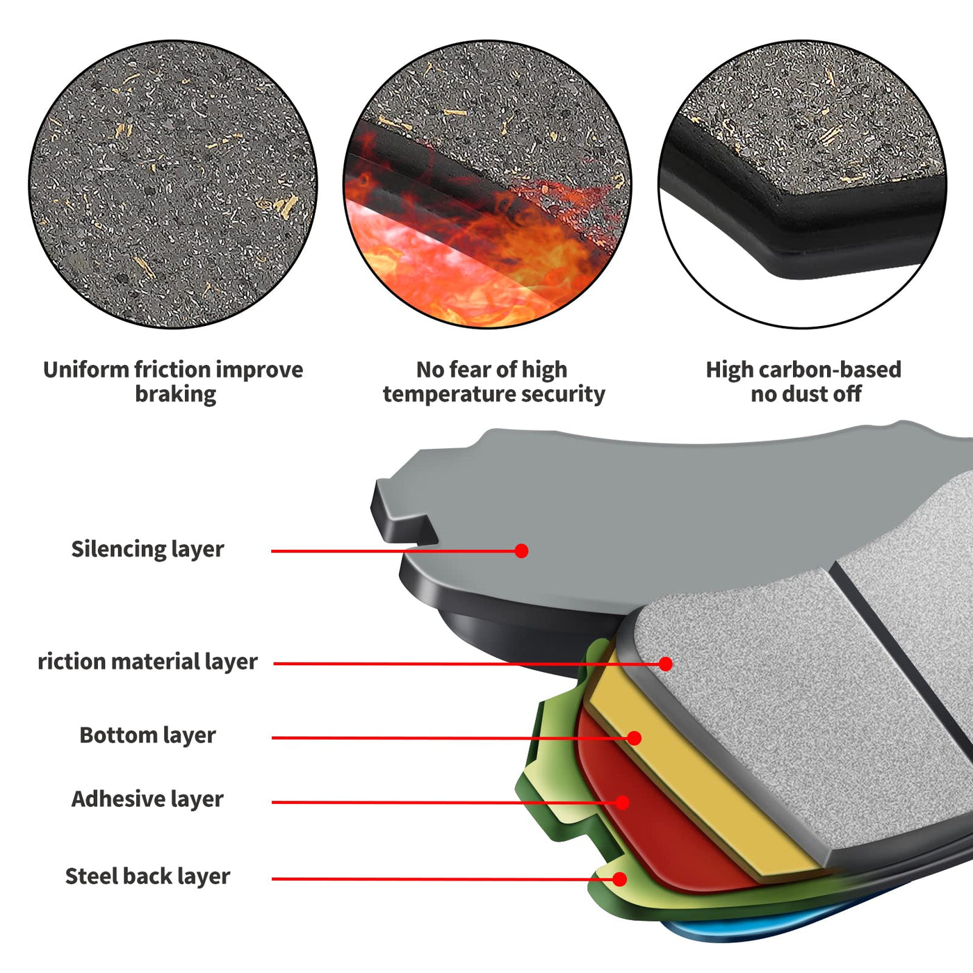 Q: What material are these brake pads made of?A: The rear brake pads are made from semi-metallic materials, which offer excellent braking performance and durability under various conditions.