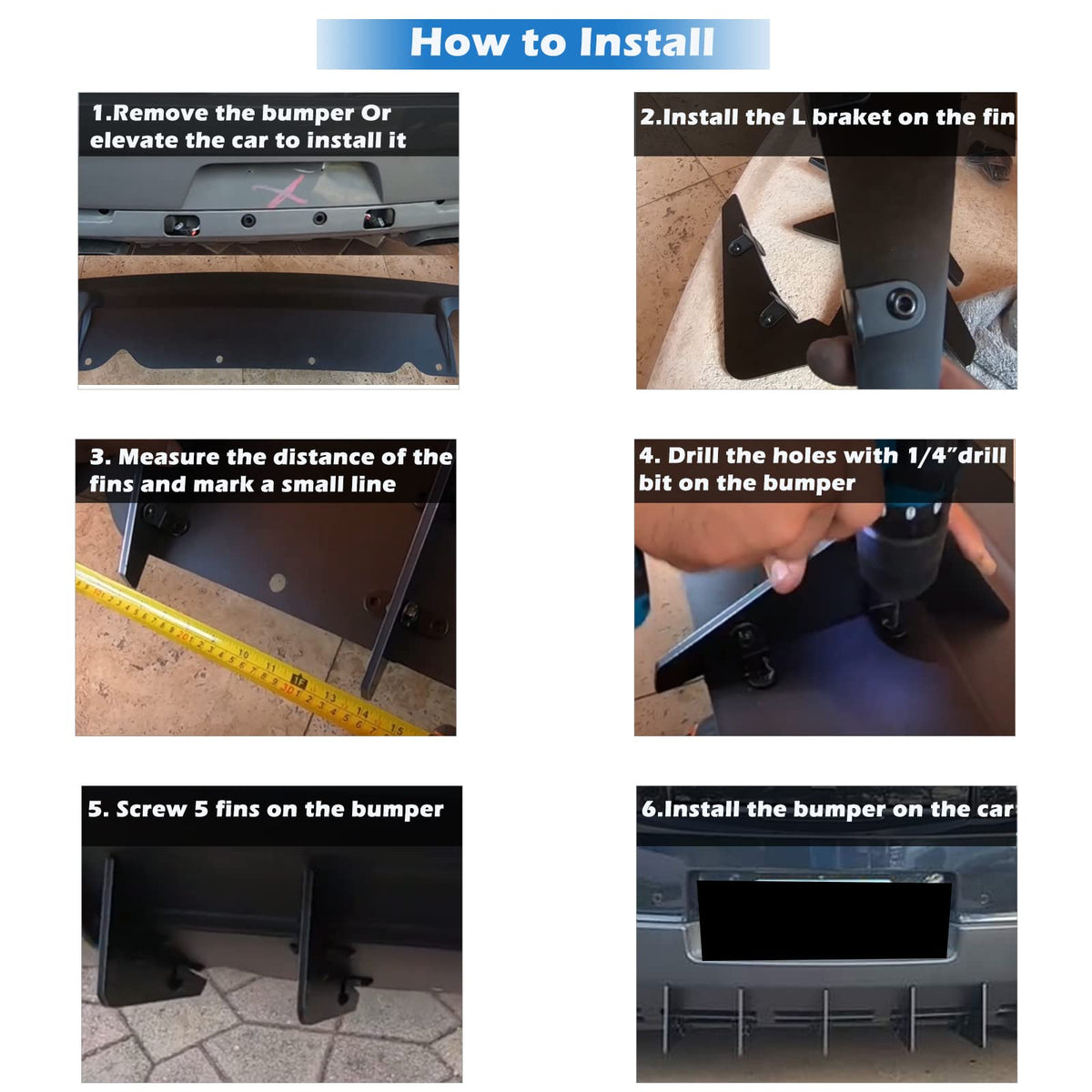5 Pieces Full Rear Diffuser Kit Is Designed For Dodge Challenger Sxt, Rt, Hellcat 2015 2016 2017 2018 2019 2020 2021 2022 Stock Rear Bumper. Rear Bumper Diffusers Are Designed To Improve Energy-Saving, Increase Downforce And Better Stability At High Speeds. Holes Need To Be Drilled In The Rear Bumper For Installation, Without Removing The Rear Bumper Or Diffuser.