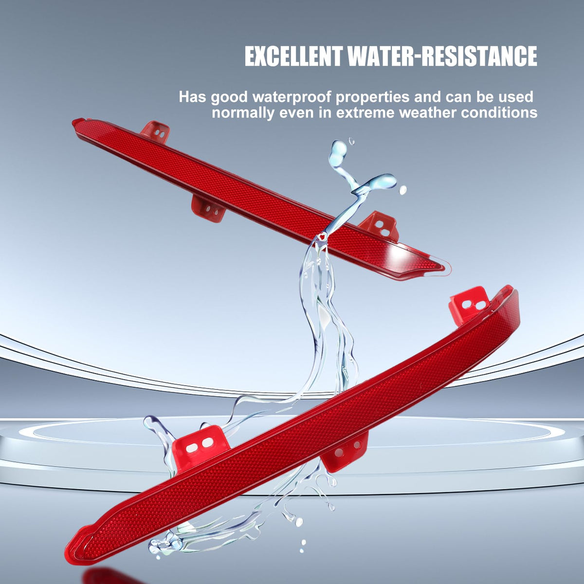 Q: What are the key features of these rear bumper reflectors?A: Key features include a waterproof rating of IP68, a low power consumption of 12V, and a long lifespan of up to 50,000 hours. They are also much brighter than stock lights and come with an error-free resistor.