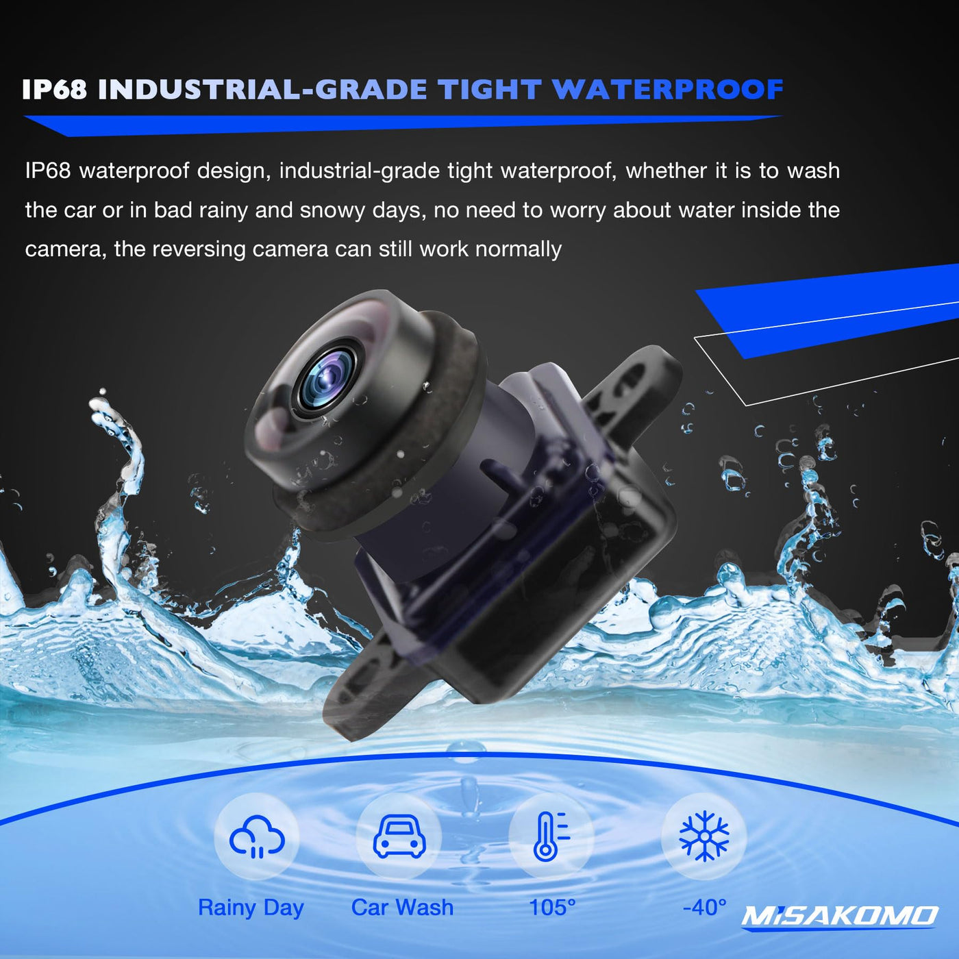 Q: Is the camera waterproof and durable for all weather conditions?A: Yes, this rear view backup camera is rated IP68, meaning it is industrial-grade waterproof and can withstand harsh weather conditions, including rain and snow. Its construction also includes reinforced materials that enhance its durability and resistance to corrosion and high temperatures.