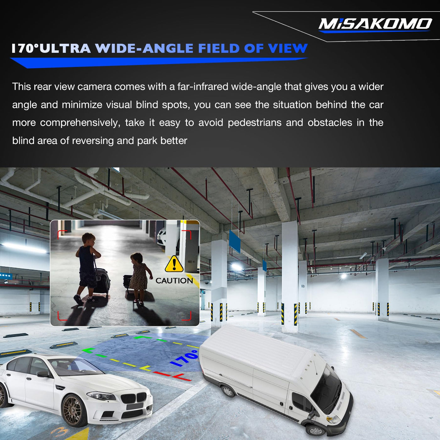 Q: What features does this backup camera offer for enhanced safety?A: This backup camera offers high-resolution imaging, HD color night vision, and a 170° ultra-wide-angle view. It also includes precise tracking lines that adapt to your vehicle's steering, helping you to maneuver safely and avoid obstacles while reversing.