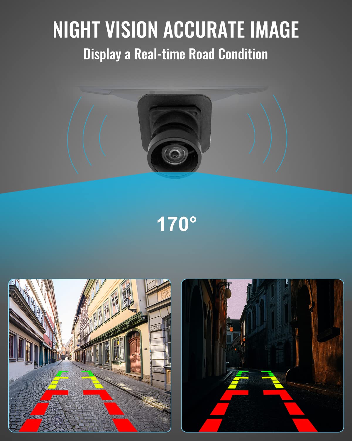 Q: How does the night vision feature work in this backup camera?A: The night vision feature uses far-infrared technology to enhance visibility in low-light conditions, allowing drivers to see clearly behind their vehicle when reversing at night.