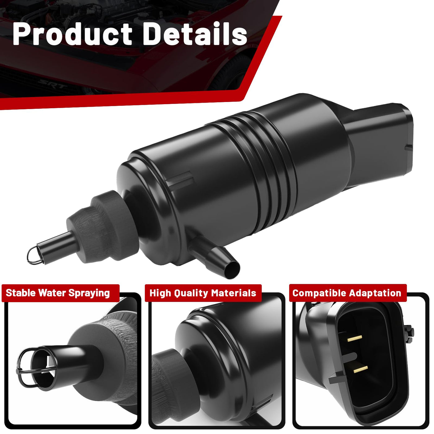 Q: What are the key features of this washer pump?A: This washer pump meets strict OEM standards and replaces OEM part numbers such as 22127573, 22087136, and 89001126. It is made from superior environmental materials, designed to effectively push fluid through the washer nozzle to clean your rear windshield.