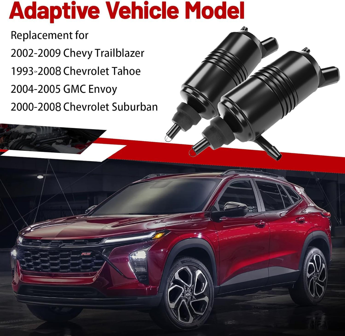 Q: What vehicles are compatible with the Rear Washer Pump Replacement?A: The Rear Washer Pump Replacement is compatible with a wide range of vehicles including Buick models from 1992-2011, Cadillac models from 2000-2009, Chevrolet models from 1985-2011, Oldsmobile models from 1990-2004, Pontiac models from 1988-2005, and GMC models from 1991-2011. This ensures a versatile fit for many vehicles.