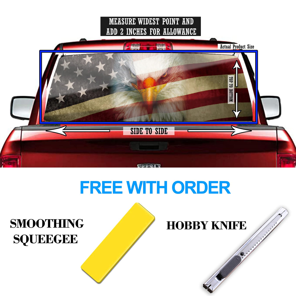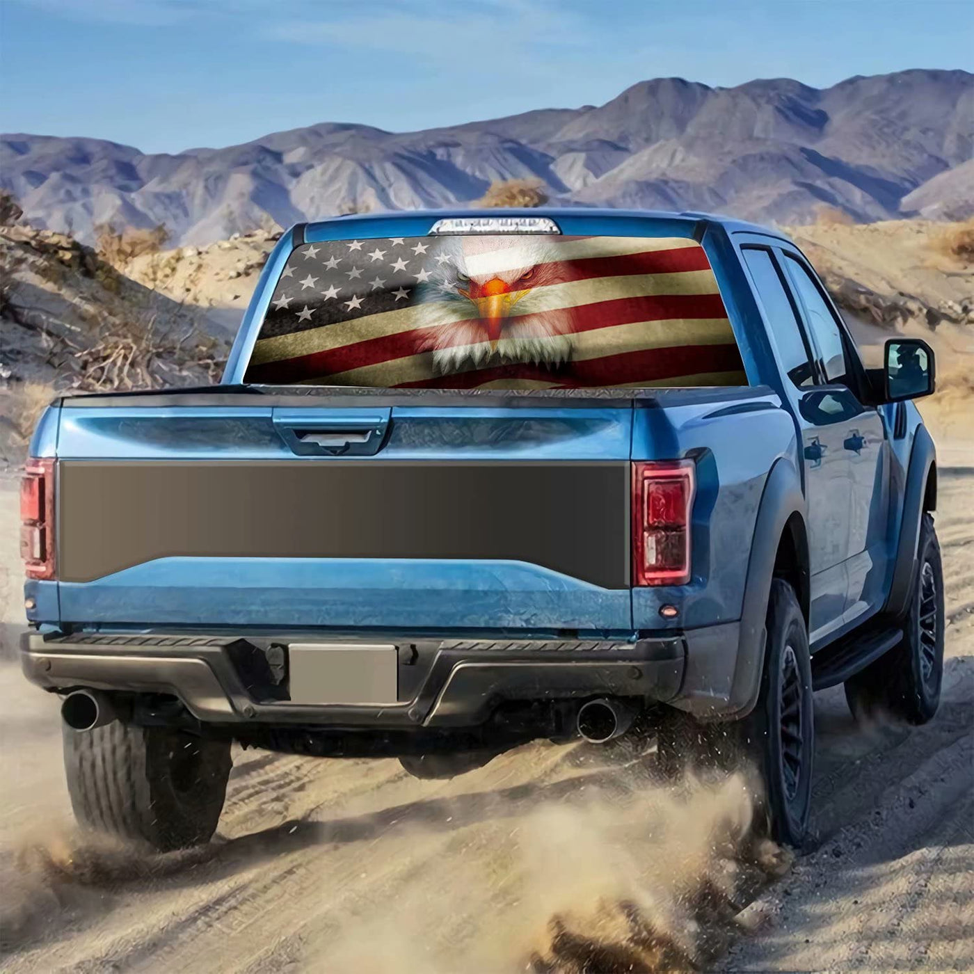 Rear Window Decals For Trucks, Pickup American Flag Window Decal, Bald Eagle Back Window Tint Graphic Perforated Vinyl Truck Sti