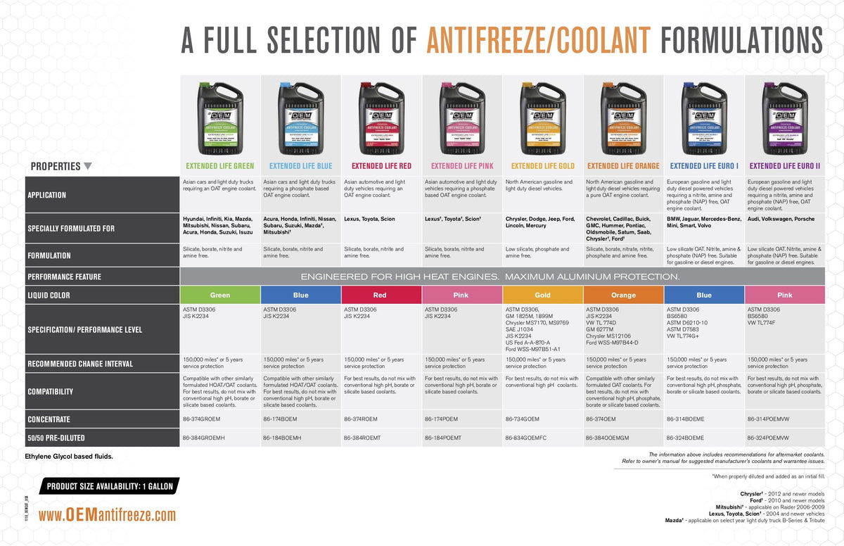 This ethylene glycol based product is free of silicates, phosphates, borates, nitrates, nitrites and amines. It protects coolant system metals against degradation and provides excellent high temperature aluminum protection. Contains Bitterant.
