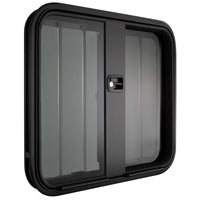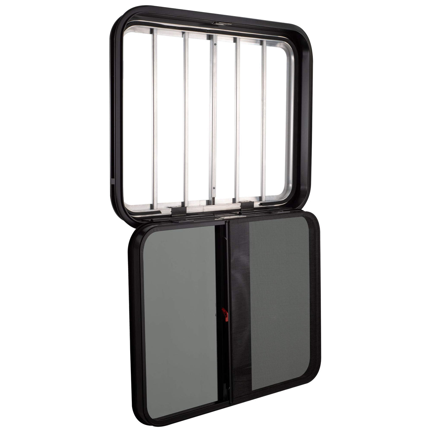Upgrade your horse trailer with these exceptionally designed feeder windows, crafted for both safety and comfort on the road. Featuring a sleek rounded-corner frame, these windows are built tough while adding a clean, professional look to your trailer. Equipped with drop-down aluminum bars, these windows provide added protection while allowing you to open the window for improved airflow during travel. The heavy-duty hinges are built to last, offering superior support and longevity even with frequent use. Each window includes an integrated screen door to keep insects out and fresh air flowing in. The screen and aluminum bars can stay in place while the window is open, ensuring your animals stay cool without compromising safety. An optional user-friendly pull handle is located low for easy reach and smooth operation. The lightweight design makes it simple to open and close the window as needed. Each window measuring 30 wide by 20 high, and includes a trim kit for a secure, finished installation.