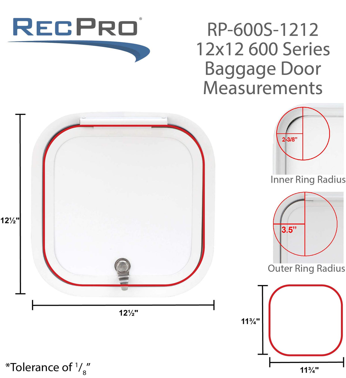 Introducing the RecPro White/ Black Rounded Baggage Door, the perfect addition to your RV! This baggage door is designed with top-of-the-line features to provide you with the ultimate convenience and functionality on the road. Crafted with fiberglass and an aluminum frame, this door is both lightweight and super strong, ensuring its durability for all your travels. Not only is it highly resistant to rust and corrosion, but it also has an inner rubber seal to keep your belongings safe and secure from water and moisture. But that's not all - this baggage door also boasts a stable closed-cell sponge polymer, providing extra protection and stability for your belongings. And for added security, it comes equipped with a stainless steel lock and key, giving you peace of mind while you're away from your RV. Not only is this baggage door functional, but it also adds a stylish touch to your RV. The rounded corners and sleek black color make it a standout piece on your vehicle. Plus, it is weather and UV resistant, ensuring its longevity and maintaining its sleek appearance for years to come. As an American-made product, you can trust in the quality and craftsmanship of the RecPro Rounded Baggage Door. We take pride in providing our customers with the best RV accessories, and this baggage door is no exception. Features: Fiberglass construction Aluminum frame Inner rubber seal Stable closed-cell sponge polymer Stainless steel lock with key Benefits: Lightweight and super strong Highly resistant to rust and corrosion Keeps your belongings safe and secure Keeps water and moisture out Looks great on your RV Weather and UV resistant Details: White or Black Rounded corners Made in America