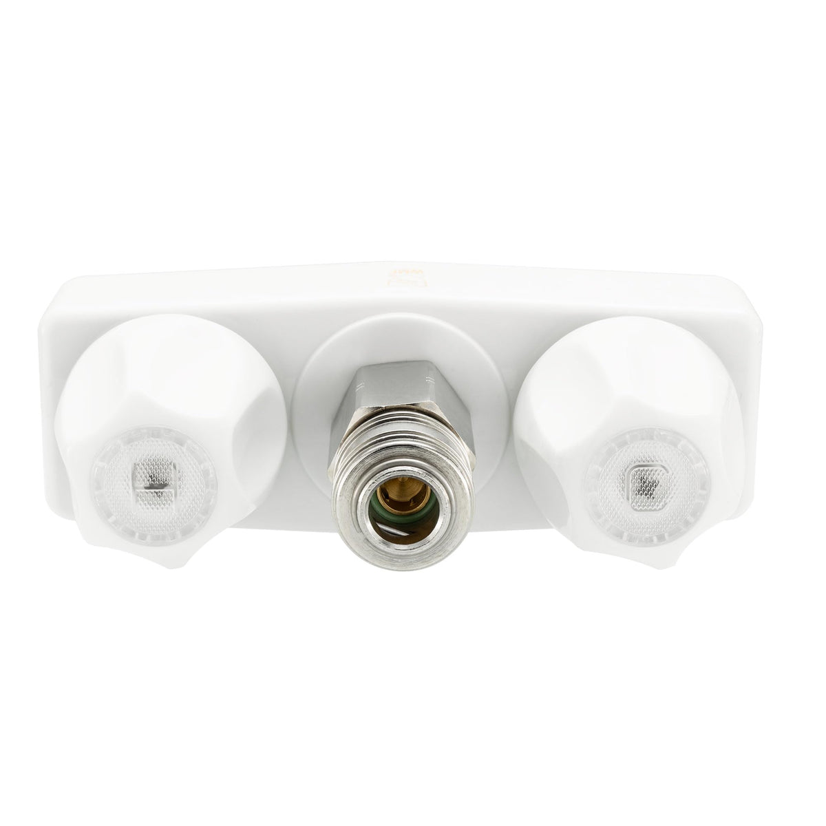 Details: Faucet Colors: black or white Dimensions: 6 1/4 W x 2 1/8 H x 5 1/4 L Material: metal With quick-connect valve Used primarily in outdoor kitchens or water supply stations thread hook-ups 2 shank Details: Flex Spout Flexible outlet Brass connector Durable food-grade rated plastic Dimensions: 14 x 1 x 1 Color: black