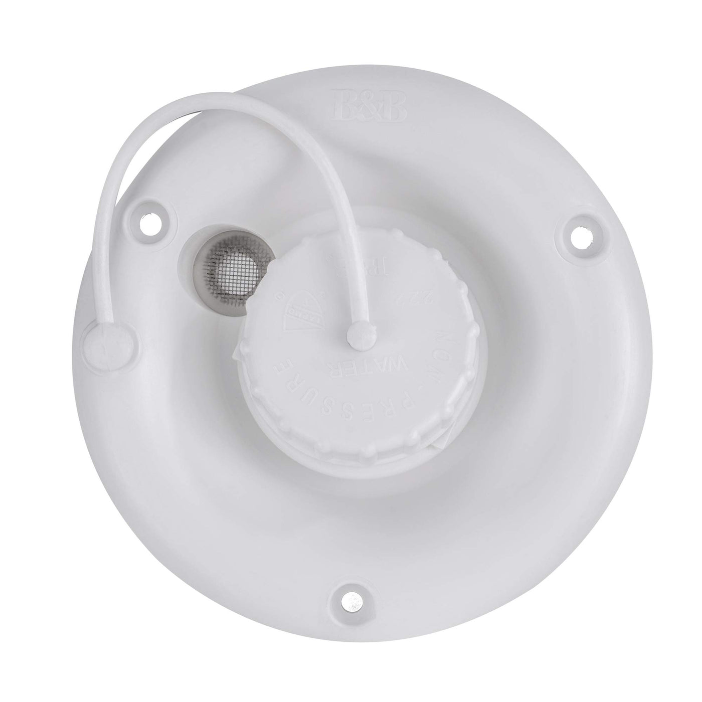 Angled flush mount gravity fill water tank fill connection, with cap, and tank vent fitting with screen For 1.25 and 1.5 fill hose, 1/2 vent hose Measures 4.5 overall diameter and needs a 3.5 hole for recessed mounting New Stronger Design Access Power cord/cable Hatch Used extensively in the RV & Camper industry Manufactured of High-Quality Plastic material with UV stabilizer for a long durable life