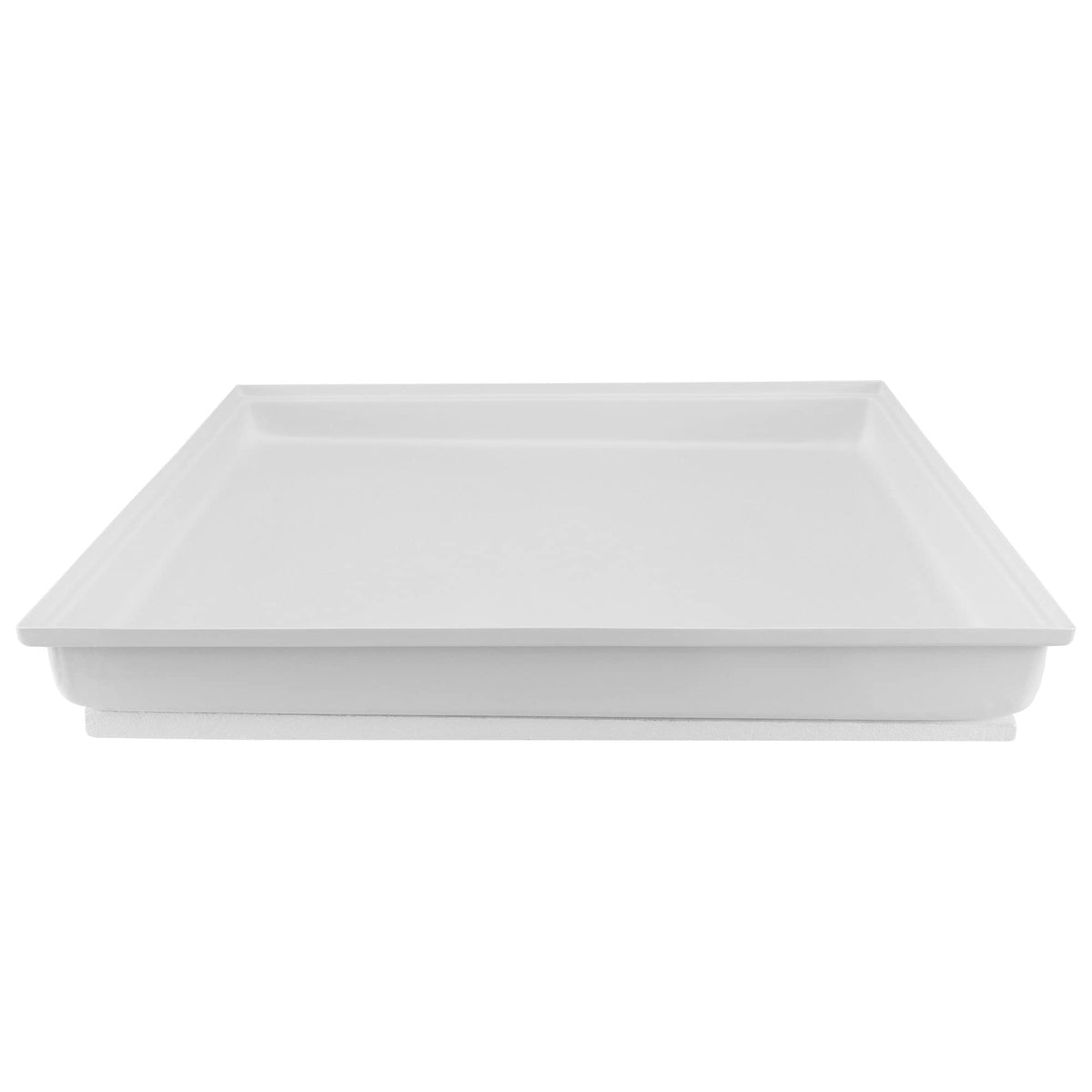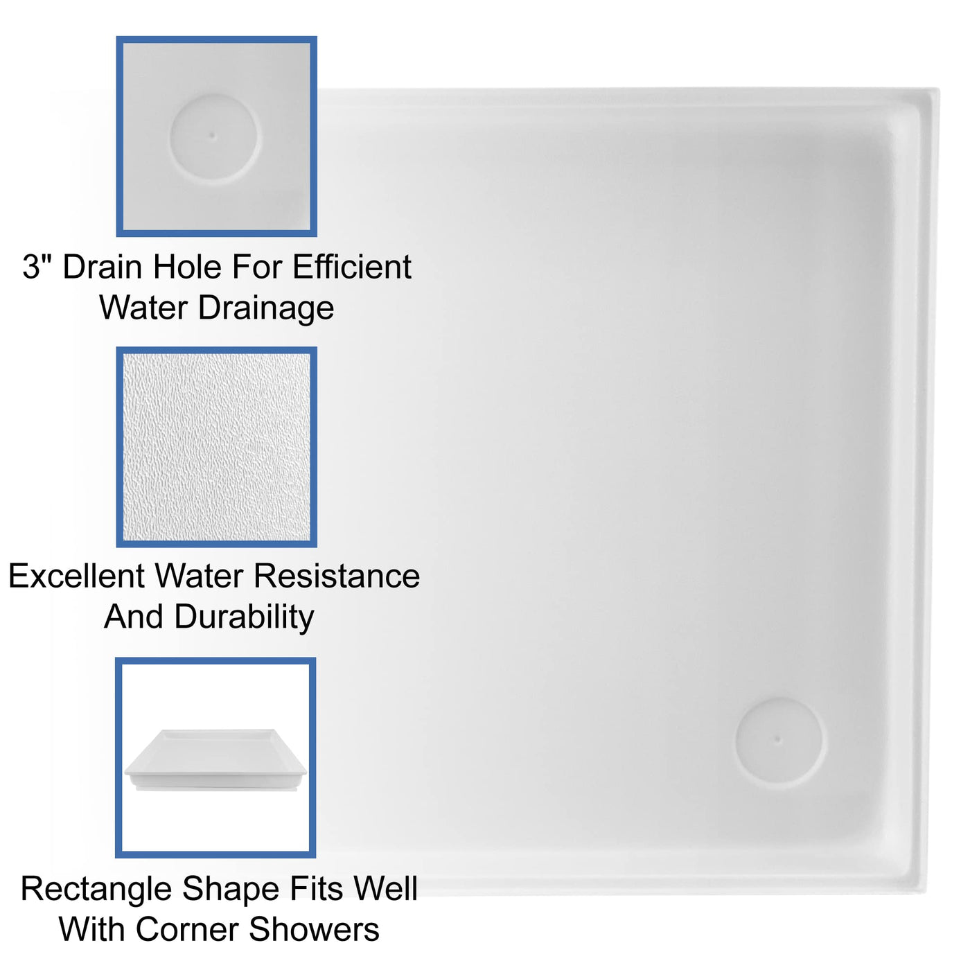 Looking for a sturdy and reliable shower pan that will keep water from spilling outside your shower? Look no further than the RecPro RV Shower Pan. This product is 27 x 24 x 4 in size, white in color, and made of plastic. It also has a textured bottom to help prevent slipping, as well as a polystyrene foam base for extra support and cushion. Plus, the square-shaped design with a drain in the corner fits well with both corner and wall showers. *Shower pan only. Does not include drain fittings.* **Do NOT clean with ammonia or harsh cleaning chemicals. Doing so can cause damage to the surface of the shower pan.** Details: Dimensions: 27 x 24 x 4 Color: White Material: Plastic 3 drain hole Textured bottom for slip-resistance Polystyrene foam base for added support and cushion Fits well with corner and wall showers Square-shaped with a drain in the corner Helps prevent water from spilling outside your shower