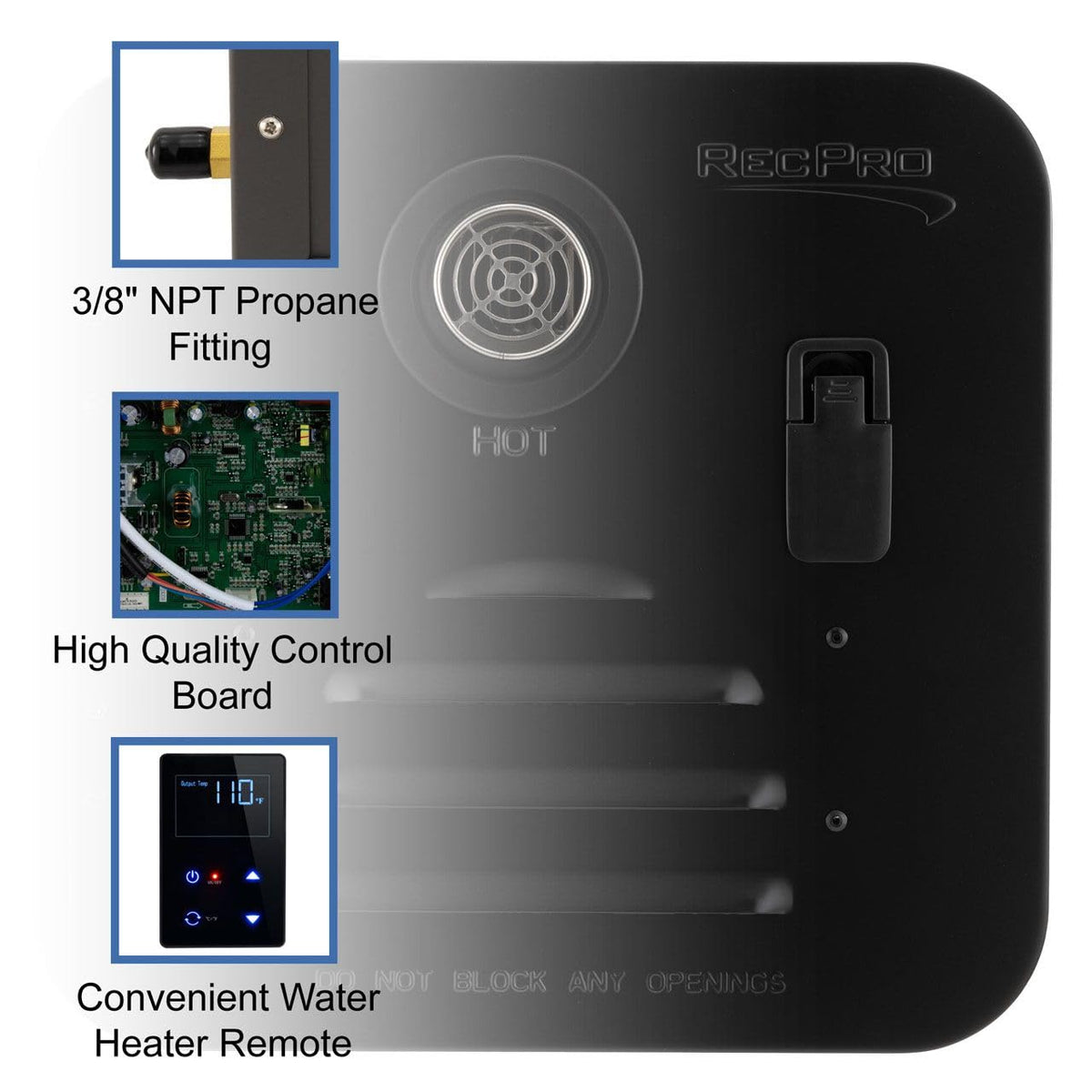 Recpro Rv Tankless Hot Water Heater | On Demand Hot Water | 42,000 Btu | Gas | Remote Control Included (18'' X 18'' Door Size, B