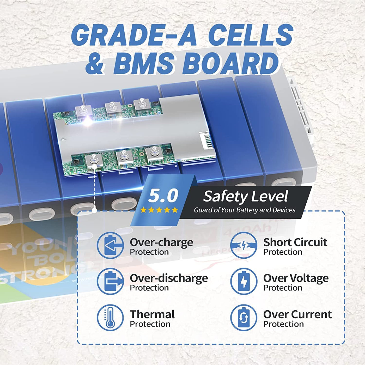 Q: How does the built-in BMS improve the safety of this battery?A: The built-in Battery Management System (BMS) protects the Redodo 12V 410Ah battery from overcharge, over-discharge, overcurrent, and short circuits. This ensures safe operation and enhances the longevity of the battery, making it a reliable energy source for various applications.