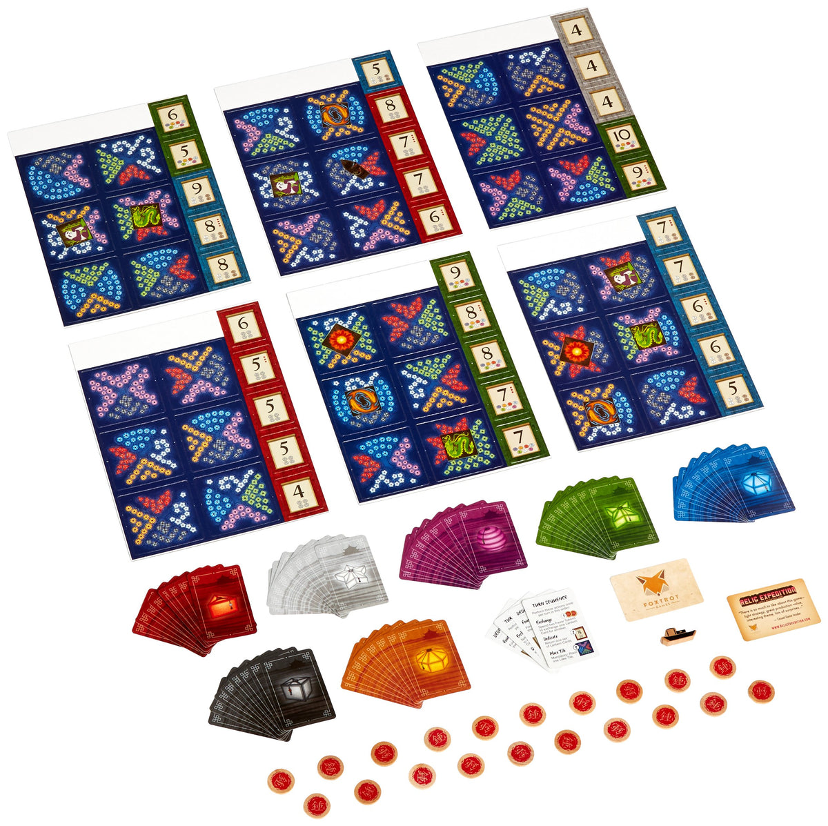 Place tiles, adorn the Palace lake, and dedicate lanterns in this beautiful, fast--paced board game set in Imperial China. 36 lake tiles 56 lantern cards 20 engraved wood favor tokens 30 dedication tokens 1 custom wooden fishing boat rulebook the harvest is in, and now it's time to celebrate! lanterns: the harvest festival is a tile-- placement game set in Imperial China. Players act as artisans decorating the Palace lake with floating lanterns. The artisan who earns the most honor before the festival arrives wins the game.On your turn, you can take these three actions one time each: Place a lake tile, which gives every player (even your opponents!) a lantern card based on the orientation of the tile. (It also could give the active player bonus lantern cards or favor tokens, depending on the placement.) Spend favor tokens to trade one lantern card for another. Dedicate sets of lantern cards to gain the honor you need to win the game.