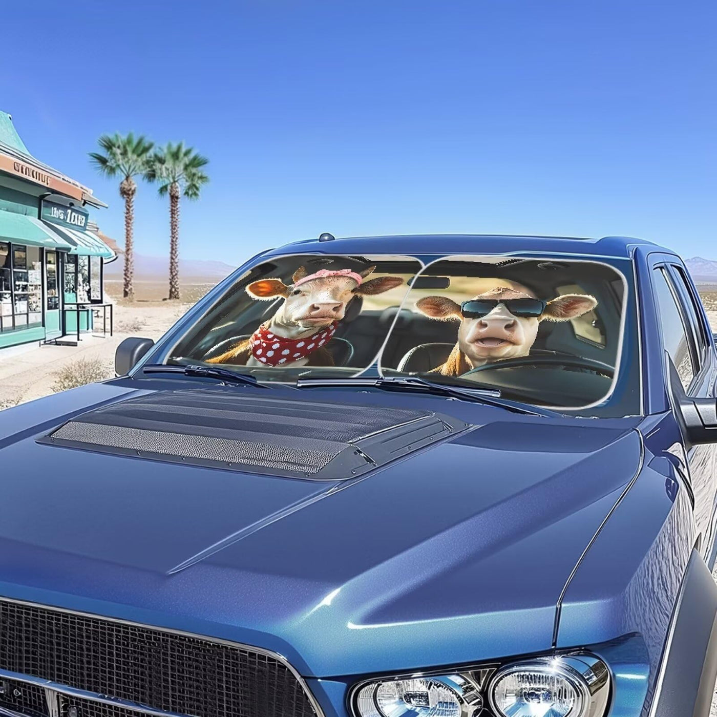 Renewold Funny Cow Animal Driving Car Windshield Sun Shade Auto Front Window Sunshade Keep Vehicle Cool Sun Visor Shield For Mos