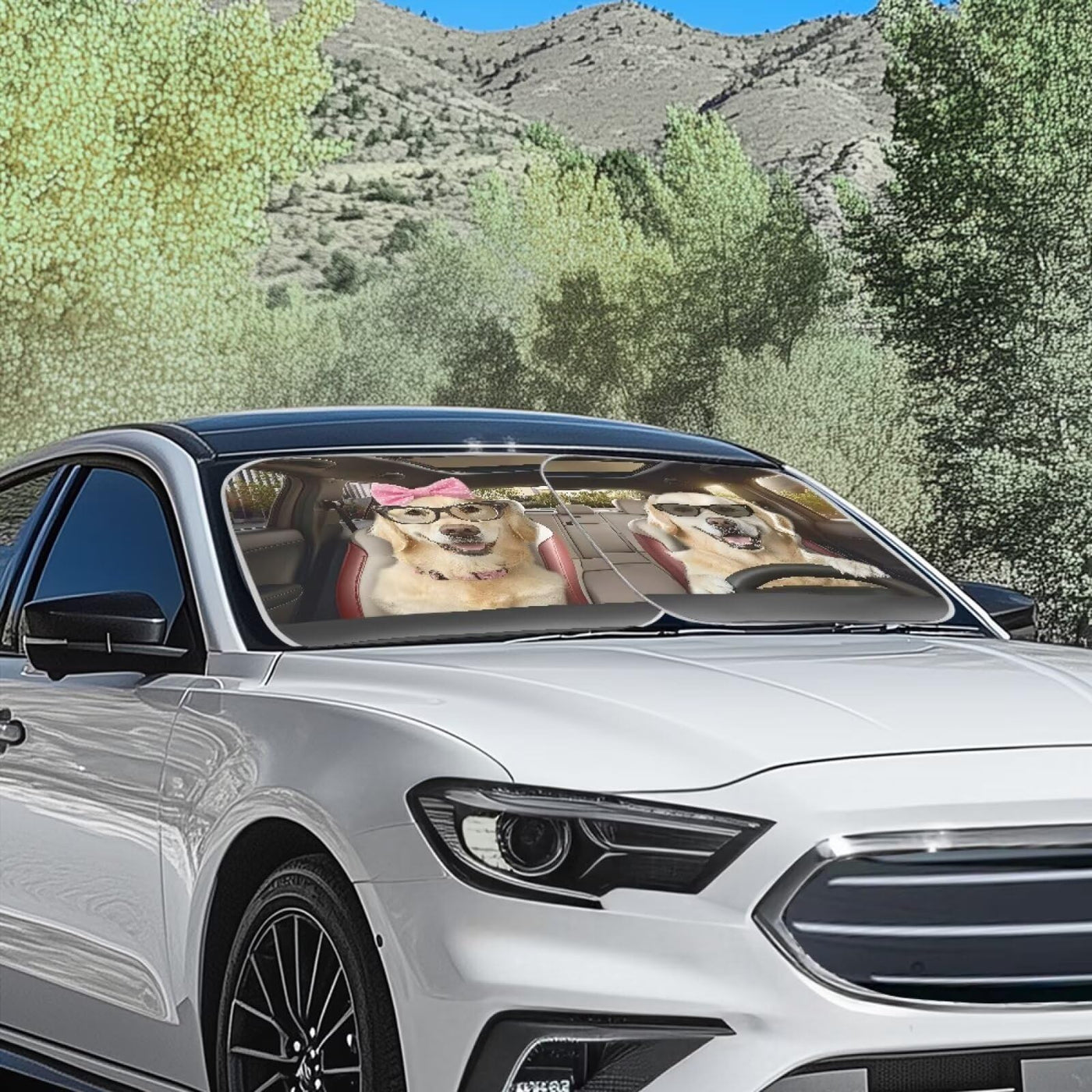 Renewold Labrador Retriever Animal Driving Automotive Windshield Sunshades 2Pcs Sun Shade For Car Front Window Car Accessories F