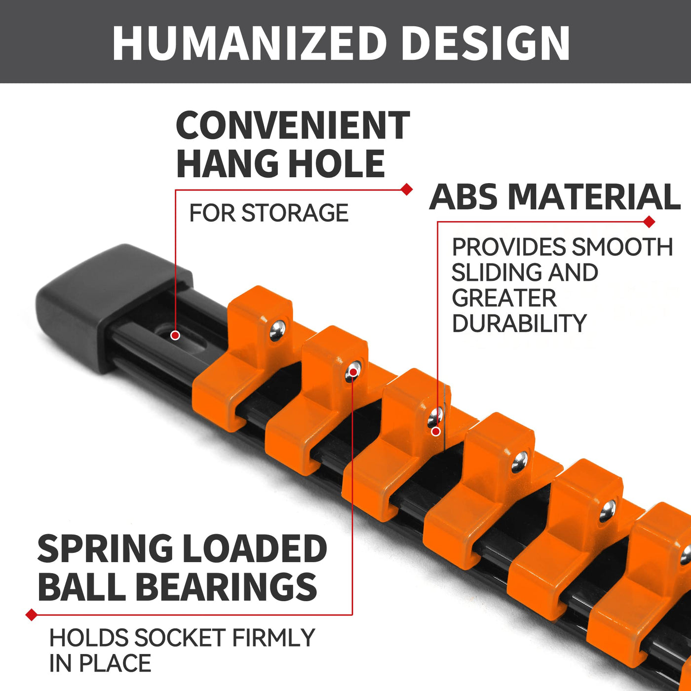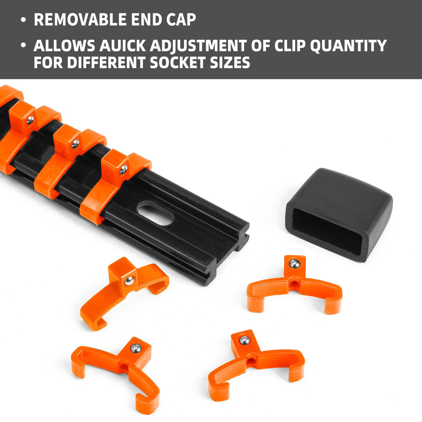Q: Is the Reniteco Socket Organizer easy to use?A: Yes, the organizer features a removable end cap that allows for easy addition or removal of clips. Each clip is equipped with spring-loaded ball bearings to securely hold the sockets in place, facilitating quick access when needed.