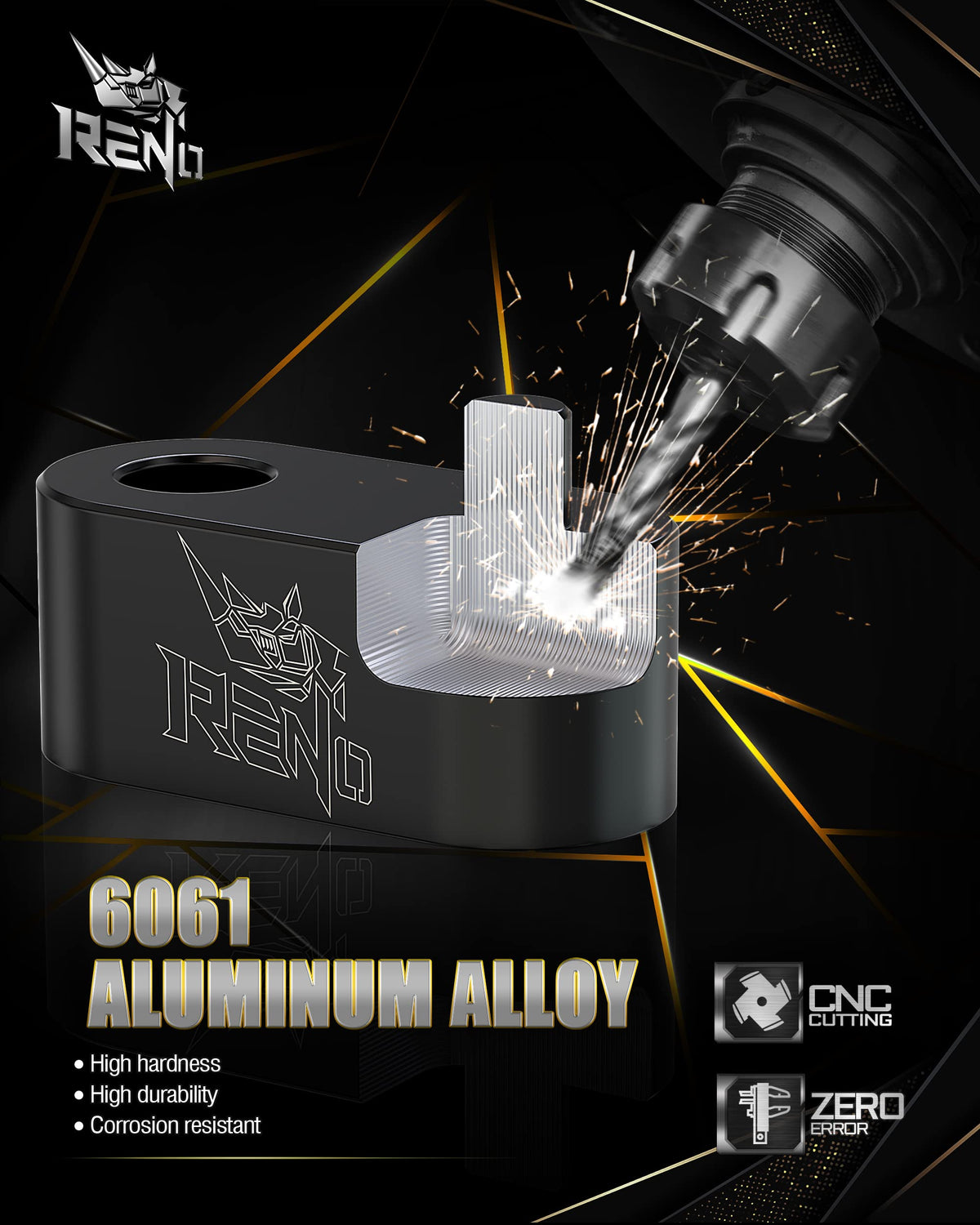 Q: What materials are used in the RENO floorboard extension kit?A: The RENO floorboard extension kit is made from premium 6061 Aluminum Alloy combined with Stainless Steel bolts. This ensures sturdy use, reliable quality, and resistance to rust and water.