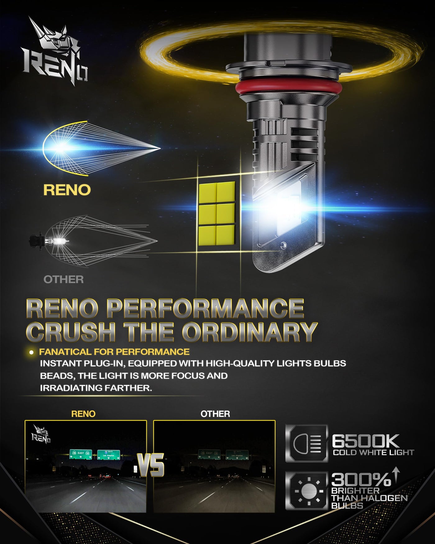 Reno 9007 Bulb,9007 Fog Light Bulbs 6000K White Lights Cool Fan Fanless In Line Car Fog Bulb Plug-N-Play, Pack Of 2