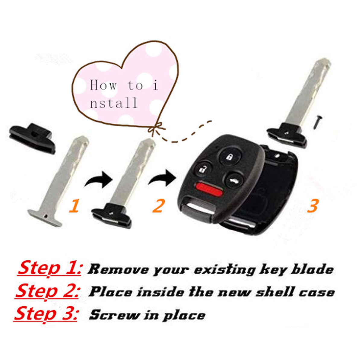 'Note: 1.This item is just a keyless entry remote shell replacement. NO interior (remote/electronics/transponder chip)unit inside. 2.Your original remote must look exactly the same as the car key shell pictured. It must have the same number of buttons as the car key case pictured. 3.Please notice that this key case cover doesn't have a chip holder. 4.The packing:2PC key fob case,2PC screws, 1PC screwdriver.2PC sticker,2PC H Emblem. Models for reference: Honda: 2003-2012 Accord 2006-2013 Civic EX 2009-2015 Pilot 2005-2006 CR-V''