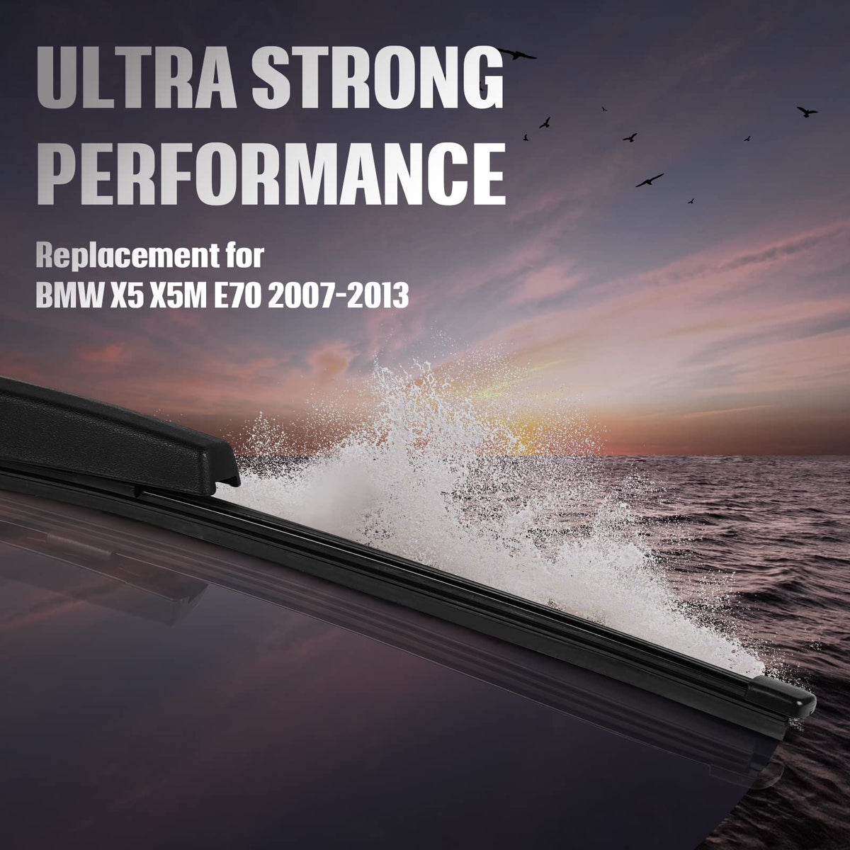 Q: Is this rear wiper arm and blade set compatible with my BMW X5 E70?A: Yes, this replacement rear wiper arm and blade set is specifically designed for the BMW X5 and X5M E70 models from 2007 to 2013, ensuring a perfect fit and optimal performance.