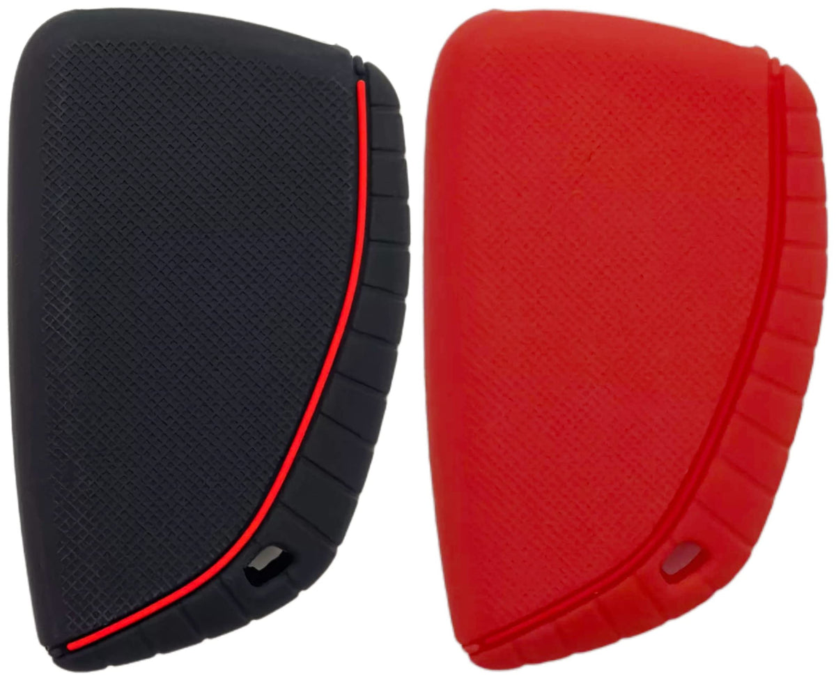 Reprotecting Silicone Rubber Key Fob Cover Compatible With 2022 2023 Chevrolet Silverado 1500 Gmc Sierra 1500 (Black Red)