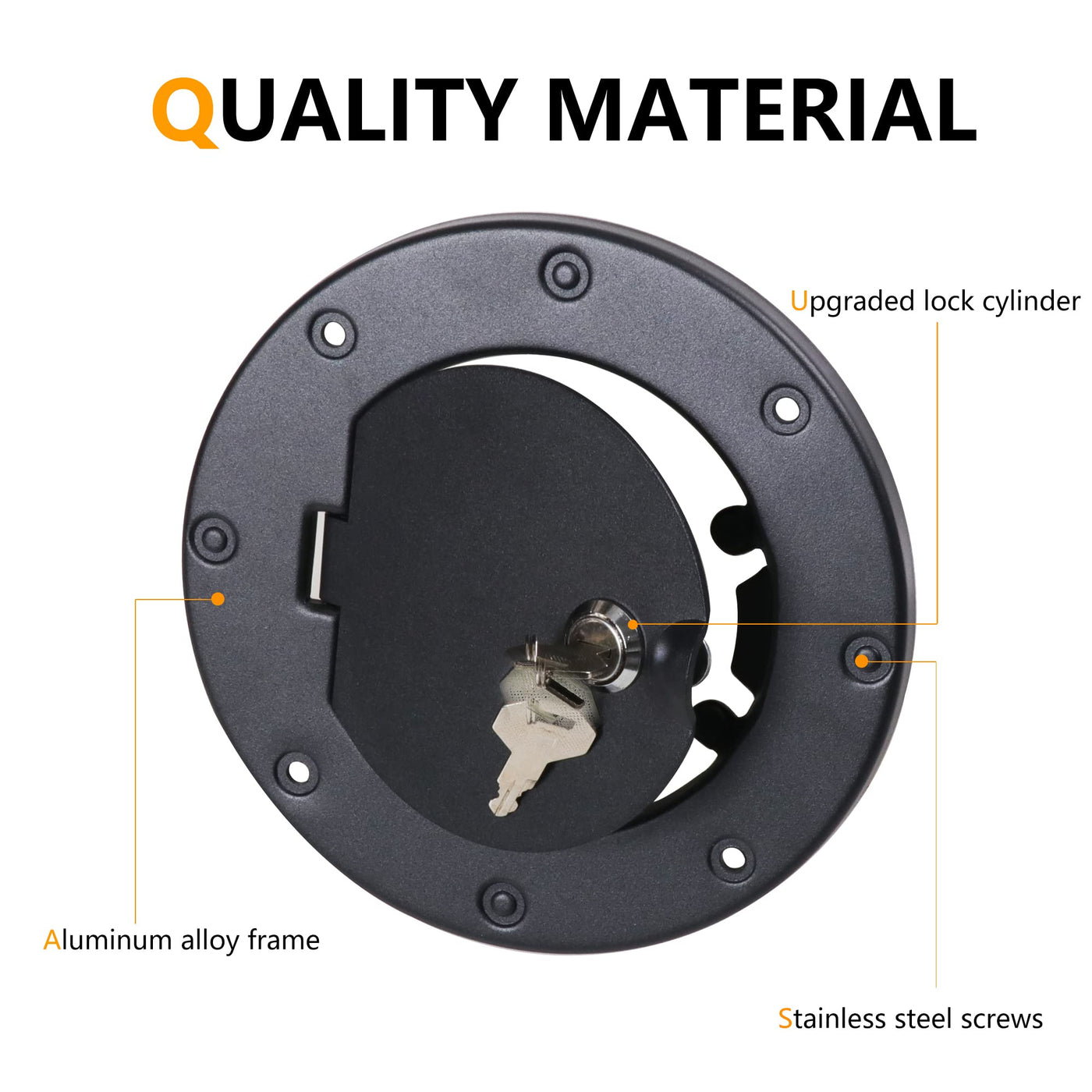 Material For Jeep Wrangler Tj Gas Cap Cover Is Made Of Quality Aluminum Alloy, Anti-Rust, Anti-Corrosion, And Long-Lasting The Surface Is Frosted By A Quality Black Powder Coat Which Can Effectively Prevent Scraping