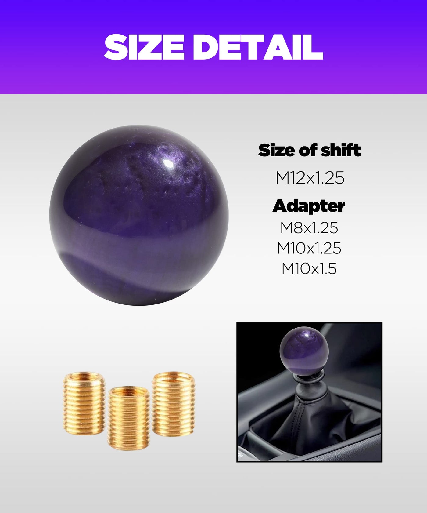 Reswish Round Acrylic Gear Shift, Universal Shifter Knob With 3 Adapters, Fit For Manual Car M 8 * 1.25, M 10 * 1.25, M 10 * 1.5