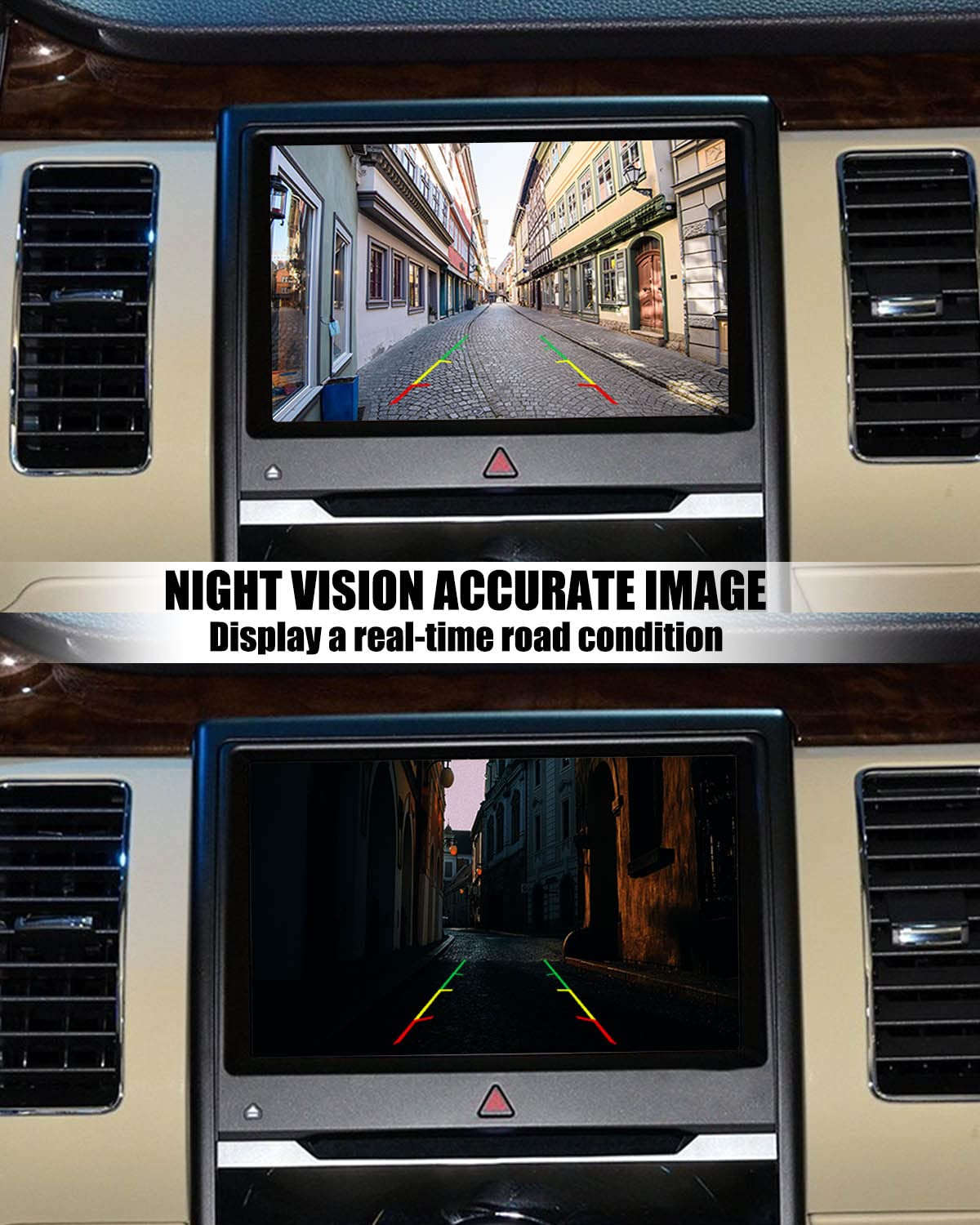 Q: What advantages does this camera offer for parking assistance?A: This reverse backup camera enhances parking safety by providing a wide-angle view and upgraded lens for clearer resolution. It allows you to see obstacles behind your vehicle while reversing, significantly reducing the risk of accidents during parking maneuvers.