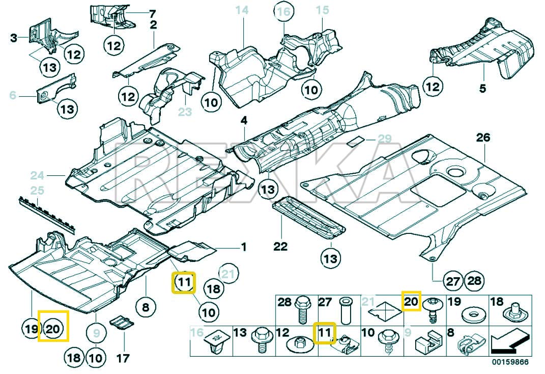Rexka 10 Sets Engine Splash Guard Belly Pan Fender Liner Screw U Nut For Bmw E46 X5 E70 X6 E71 Mini R50 R53 R56 R55 R57