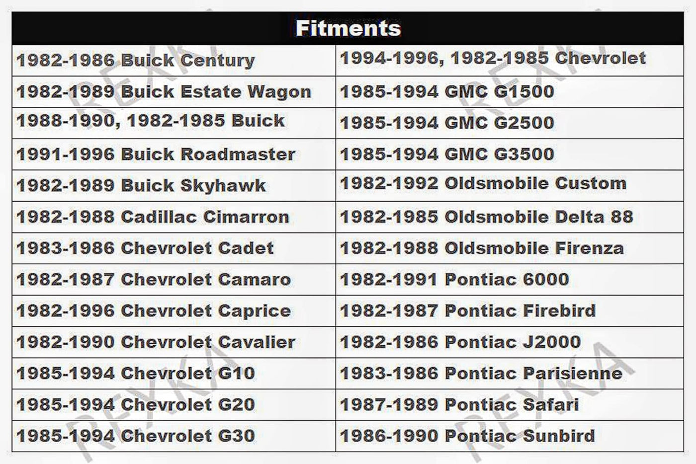 Q: What vehicles are compatible with the Rexka Door Lock Tailgate Handle Rod Clips?A: The Rexka Door Lock Tailgate Handle Rod Clips are designed to fit a variety of GM vehicles, including Buick models like Century, Estate Wagon, Lesabre, and Roadmaster; Cadillac Cimarron; Chevrolet models such as Cadet, Camaro, Caprice, Cavalier, and Impala; GMC models including G1500, G2500, and G3500; as well as Oldsmobile and Pontiac vehicles.