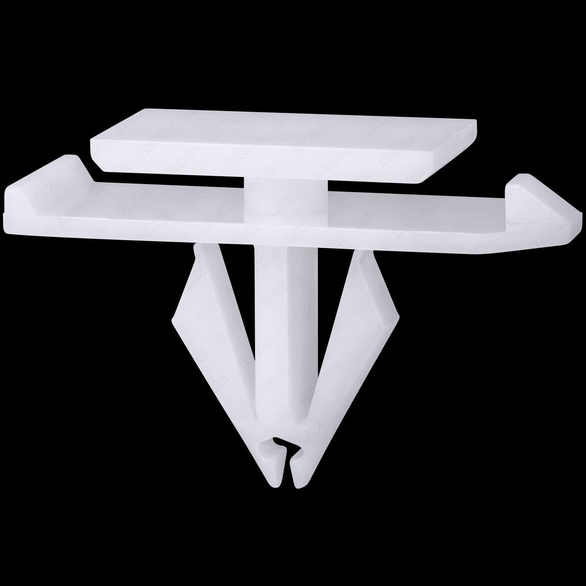 Q: What material are the Rexka Rocker Moulding Clips made from?A: These clips are made from durable white nylon, providing strength and resistance to wear, making them suitable for automotive applications.