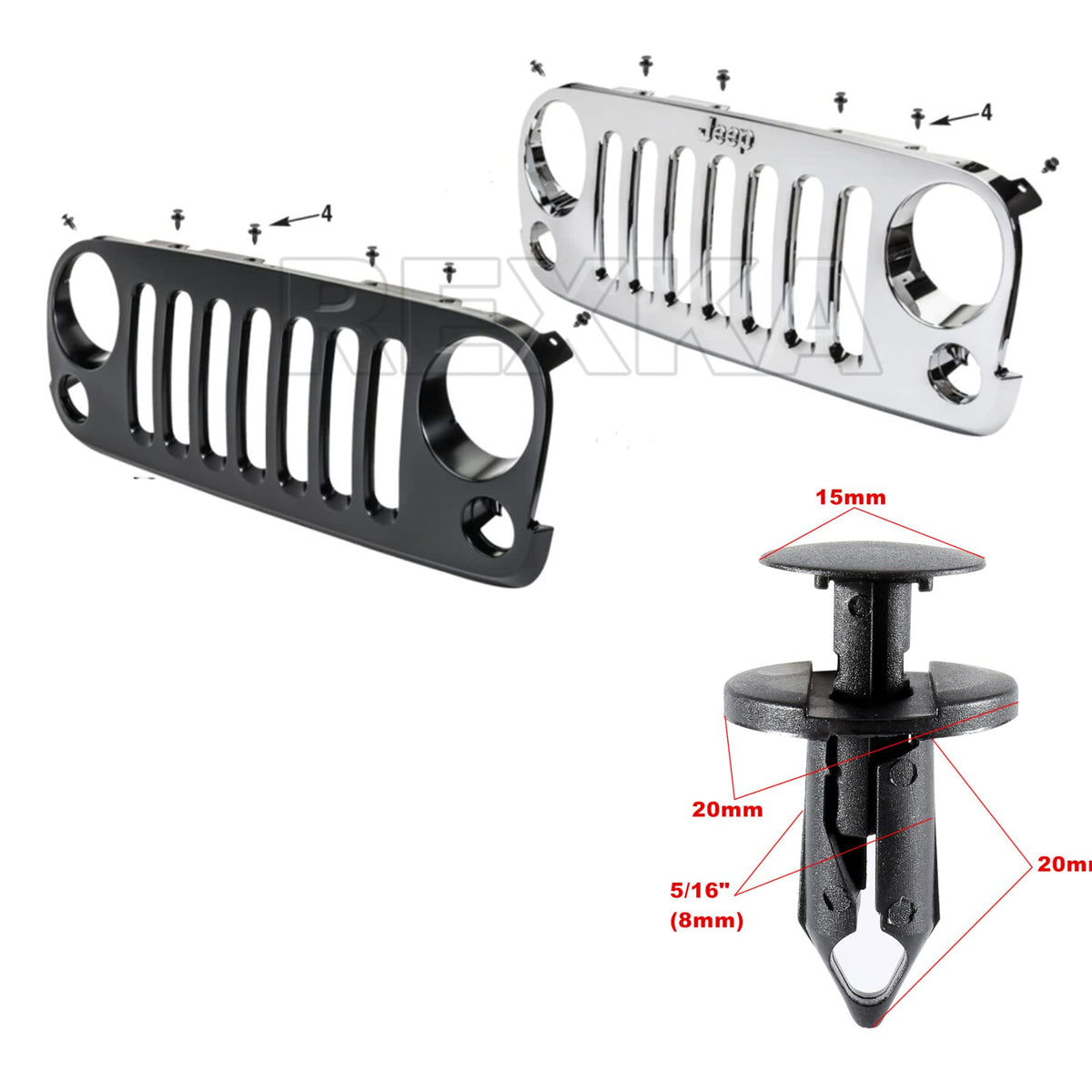 Rexka 25Pcs Grille Push Pin Retainer Clips Fasteners Rivet 6503598 Compatible With 2007-2020 Jeep Wrangler & 05-10 Grand Cheroke