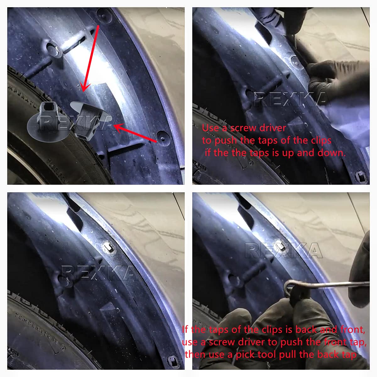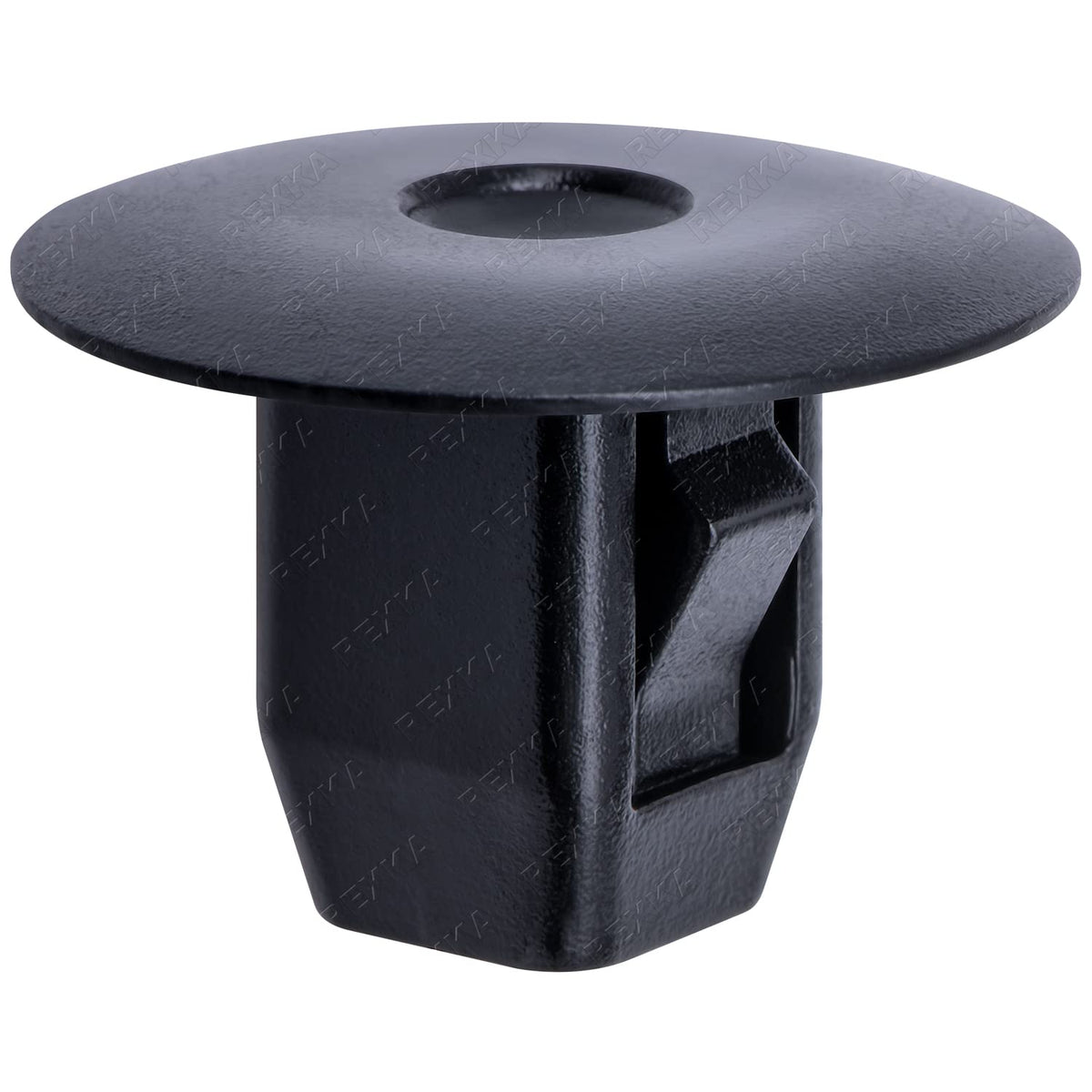 Q: What materials are used in the Rexka Fender Liner Retainer Clip?A: The Rexka Fender Liner Retainer Clip is made from durable black nylon, ensuring longevity and resistance to wear and tear, even in harsh weather conditions.
