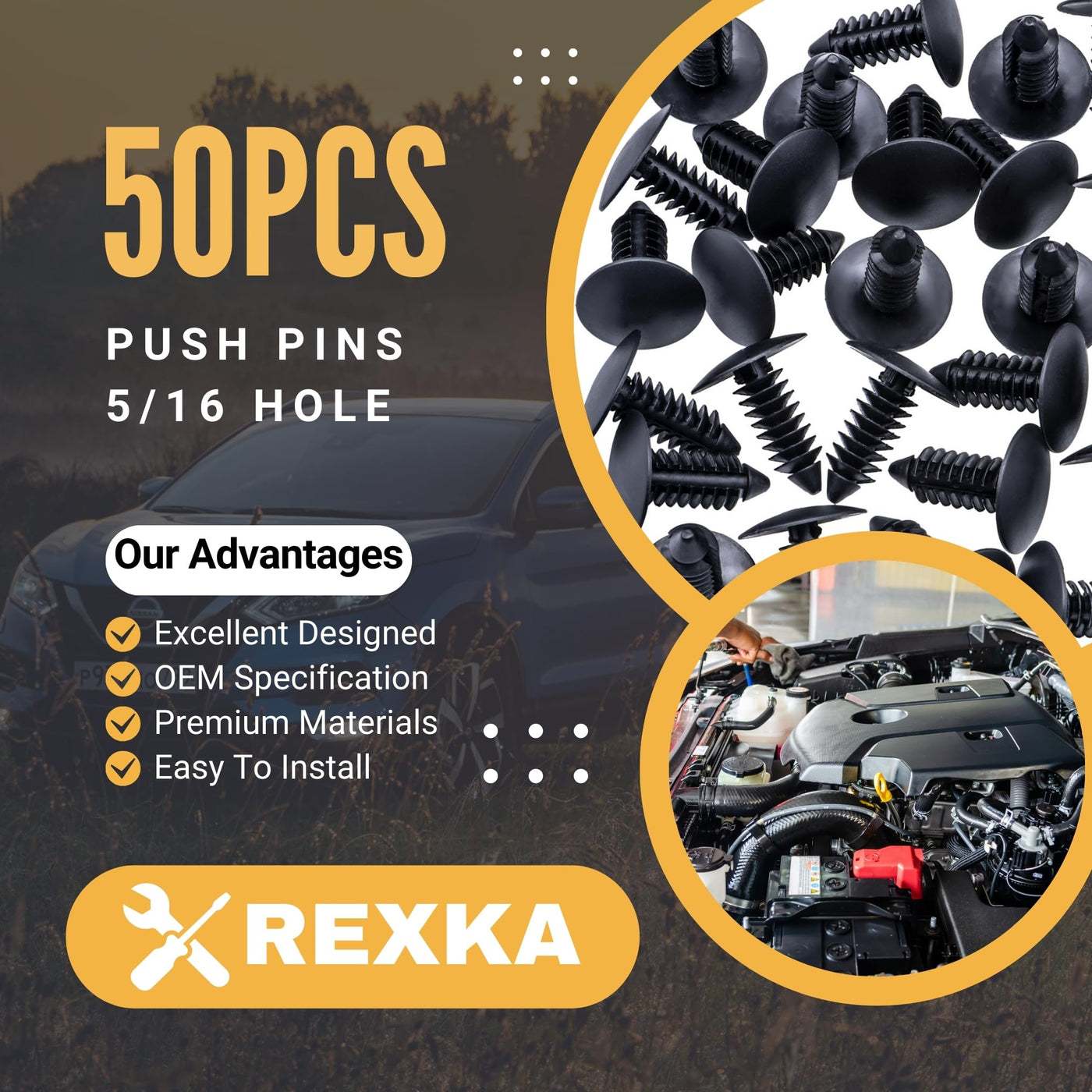 Rexka 50Pcs Fender Bumper Shield Fender Liner Push Pin Retainer Clips 6030441 For Jeep Dodge Ram Chrysler