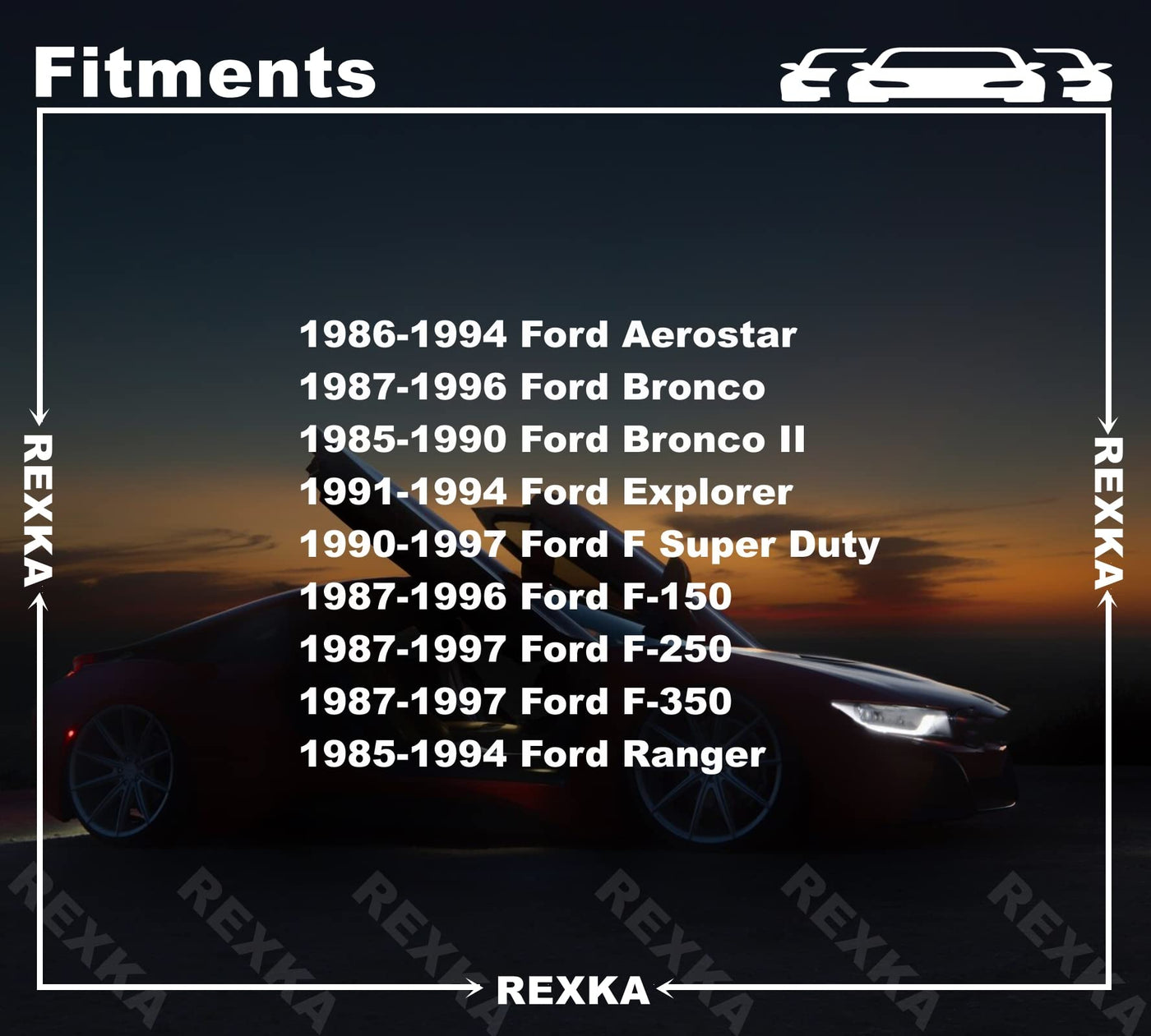 Q: What vehicles are compatible with the Rexka F-150 Clutch Pedal Shaft Bushing?A: The Rexka F-150 Clutch Pedal Shaft Bushing E69Z-7526-A is compatible with a variety of Ford models including the 1987-2003 Ford F-150, 2004 Heritage models, 1987-1999 Ford F-250, 1987-1997 Ford F-350, 1985-1994 Ford Ranger, 1987-1996 Ford Bronco, and 1988-1997 Ford F Super Duty.