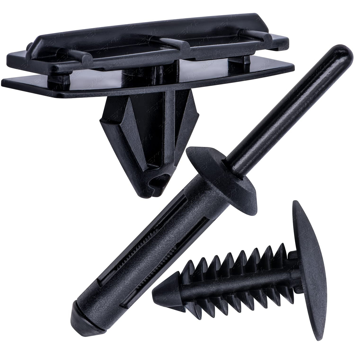 Q: How many pieces are included in the fender flare hardware kit?A: The Rexka Fender Flare Hardware Kit includes a total of 45 pieces, which consists of 15pcs of 6030441 push pin retainers, 15pcs of 6506007AA fender flare plastic rivets, and 15pcs of 68039280AA T-style fender flare clips.