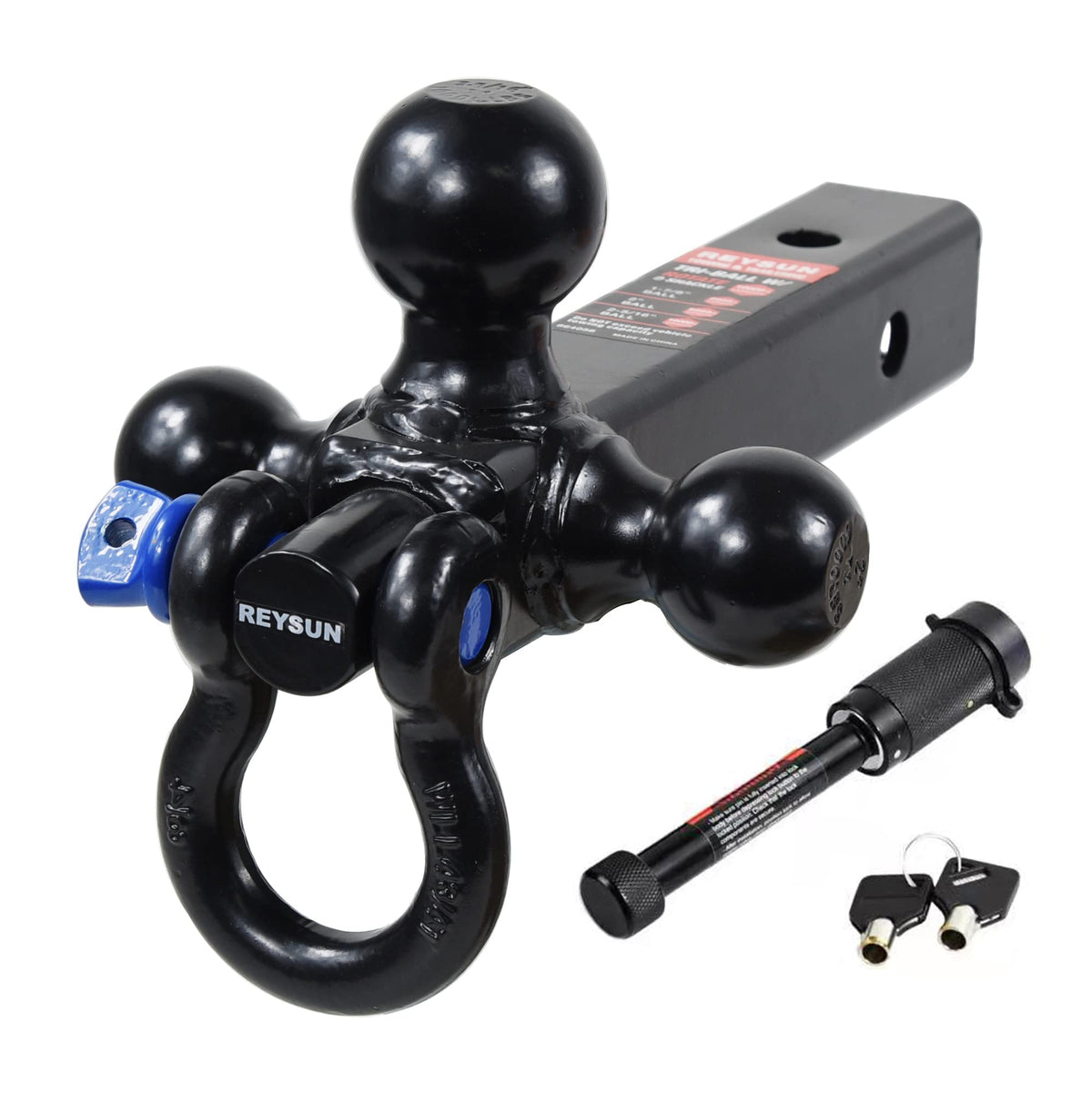 Reysun 864058 Recovery Trailer Hitch Tri Ball Mount And 360 Swivel Tow Shackle, Fits For 2' Receiver, Class V Hitch Lock Included…