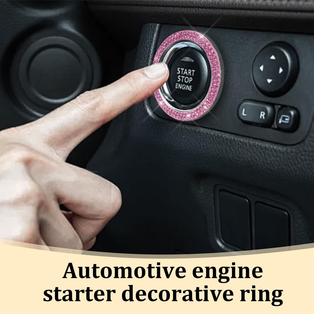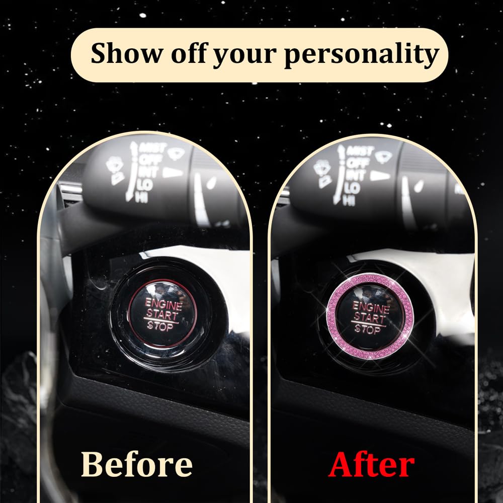 RGOAANC 2PCS Crystal Rhinestone Car Engine Start Stop Decoration Ring, Anti-Scratch Key Ignition & Knob Bling Ring, Car Accessor
