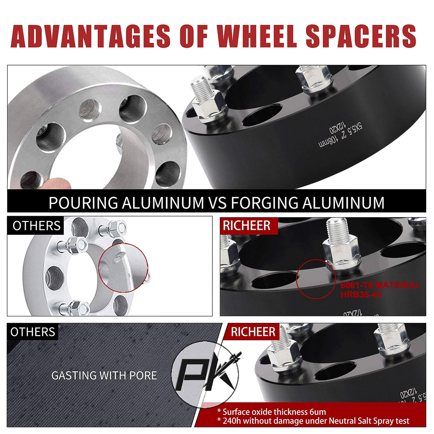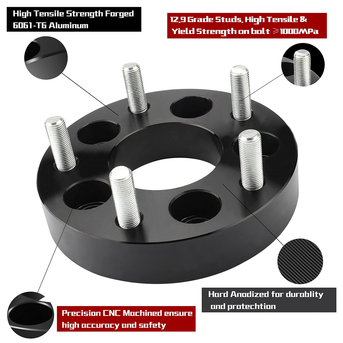 - Q: What is the weight of each wheel spacer? A: Each wheel spacer weighs approximately two pounds. This lightweight design aids in enhancing vehicle performance.