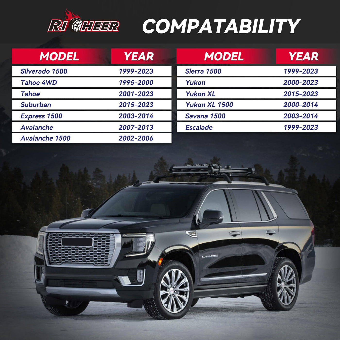 Q: What vehicles are compatible with the Richeer 2 Inch 6x5.5 Hubcentric Wheel Spacer?A: The Richeer 2 Inch 6x5.5 Hubcentric Wheel Spacer is compatible with a variety of vehicles including the 1999-2025 Silverado 1500, 1995-2004 Tahoe 4WD, 2001-2024 Tahoe, 2015-2024 Suburban, 2003-2014 Express 1500, 2007-2013 Avalanche, and more.