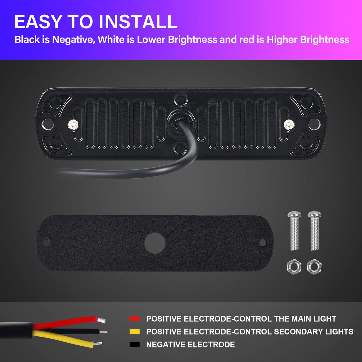 Q: What are the installation requirements for the RIGIDON LED Emergency Strobe Lights?A: The RIGIDON LED Emergency Strobe Lights are designed for easy installation. They come with red and black wires that connect to the positive and negative terminals of your vehicle's power supply. A yellow wire allows you to switch between continuous and flashing modes, making it user-friendly for most vehicles.