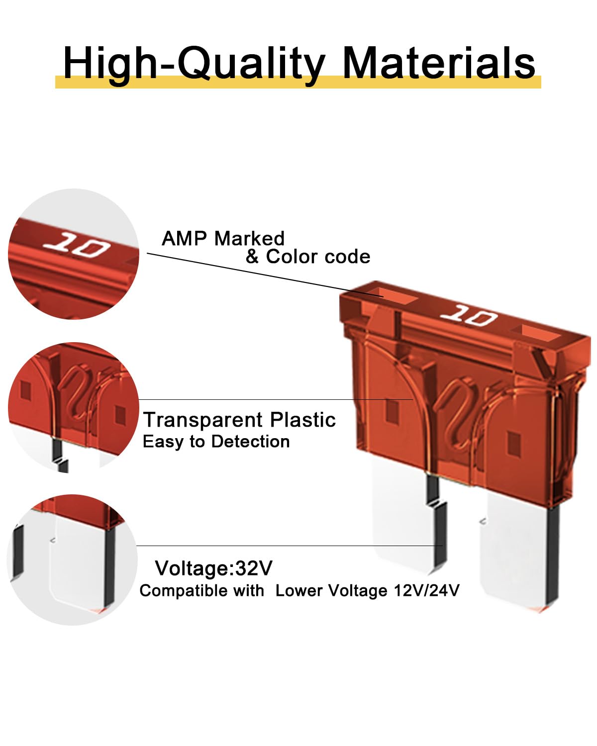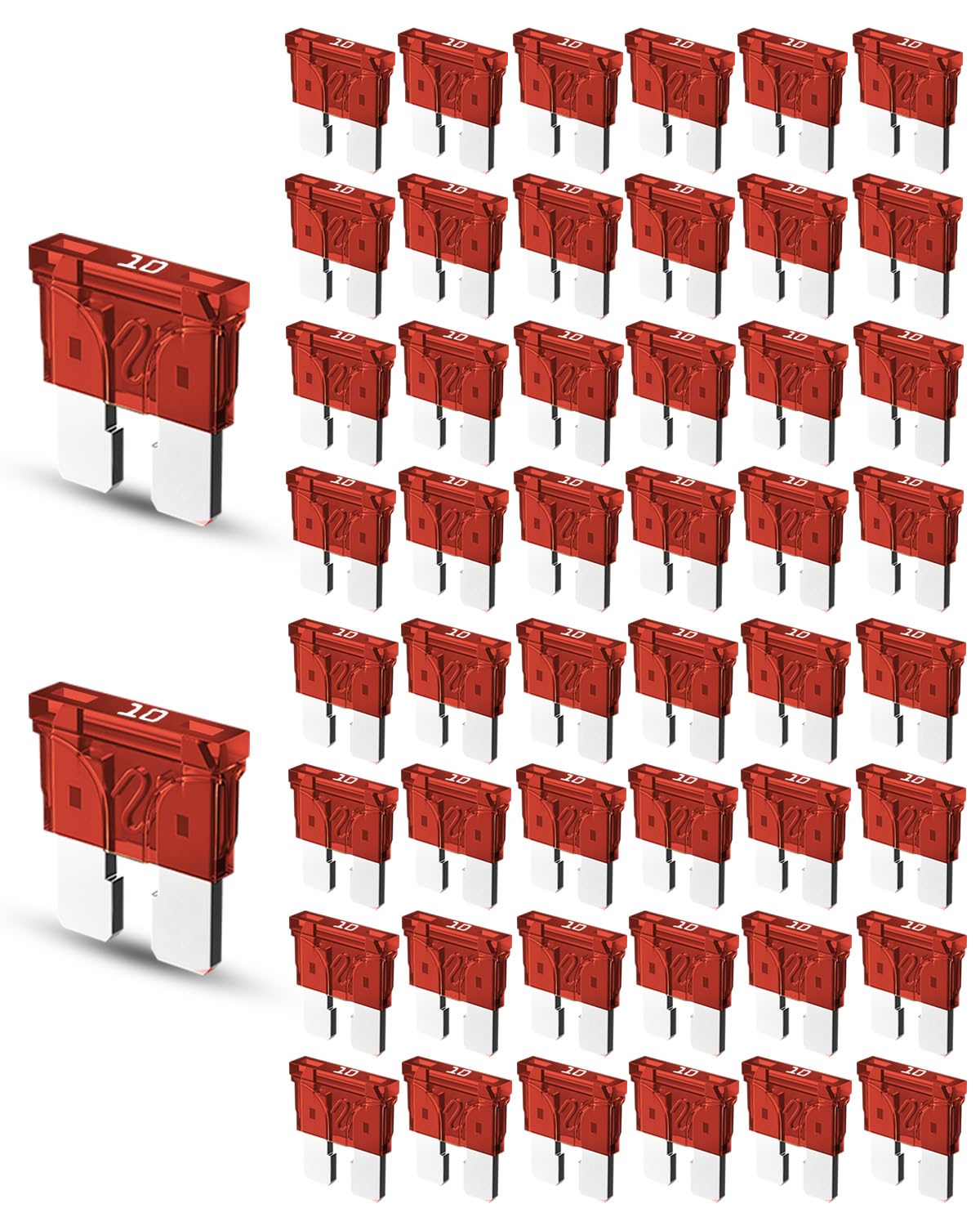 Riseuvo 50Pcs 10A Standard Car Fuses - 10 Amp Automotive Fuses(Ato/Apr/Ats), 32V (12/24V) Blade Fuse For Rv/Truck/Suv