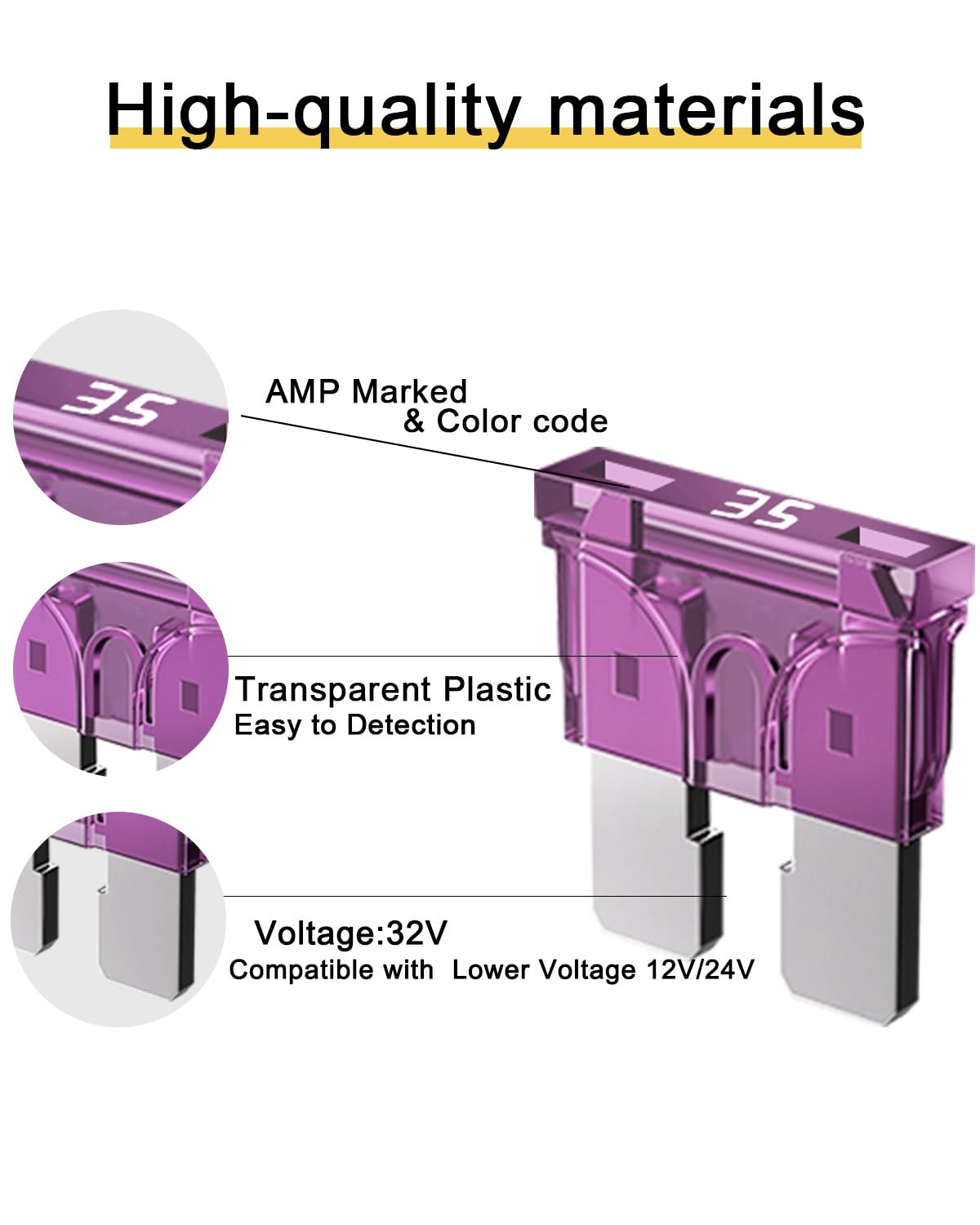 Riseuvo 50Pcs 35A Standard Car Fuses - 35 Amp Automotive Fuses(Ato/Apr/Ats), 32V (12/24V) Blade Fuse For Rv/Truck/Suv